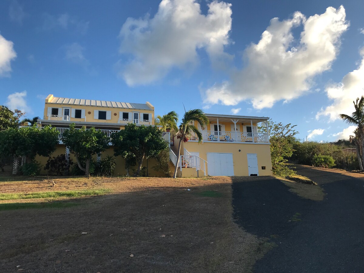 Este oasis aislado en la ladera de una montaña, convenientemente ubicado en el centro de la isla, ofrece vistas panorámicas de Salt River Bay, Buck Island y las islas circundantes. Un espacioso estudio con terraza privada y entrada independiente desde un verde patio adornado con flora exótica, ofrece un impresionante paisaje marino de 180 grados. Disfruta de hermosos jardines, cenador japonés y jacuzzi, mientras escuchas los sonidos de las olas rompiendo y te refrescas con los constantes vientos alisios. Una mezcla perfecta de romance y relajación.