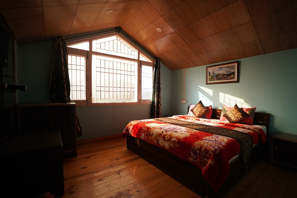 Splendid View Eco Orchard Resort es más que un centro vacacional en medio de la propiedad de huerto de 6 acres de manzana, melocotón, albaricoque, pera, cereza. Si te pierdes en tu apretada agenda de la vida de la ciudad,vuelve a conectarte con una vista espléndida a una altitud de 7000 pies. Espléndida vista es una propiedad independiente de una sola habitación premium con balcón personal y césped en la parte delantera. Una casa de campo es con cocina modular adjunta para huéspedes de mucho tiempo, aquellos que quieren cocinarse y trabajar desde casa.