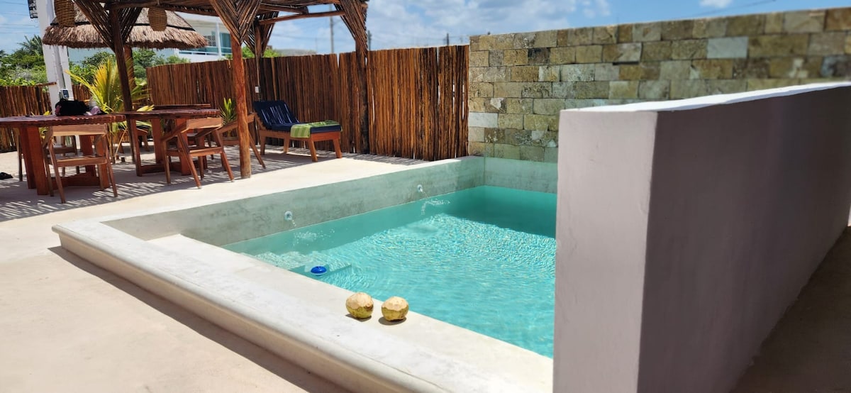 Villa Bohemia is an adults only, relaxing getaway located in a quaint fishing village between Chelem and Chuburna, off the Entrada Arrecifes (Reef). Catch some sun at the pool or at the beach, or relax in the shade and enjoy the peaceful and relaxing environment we've created for you. Pets and children are not allowed. Snorkel and swim at the small reef, located right in your own backyard.