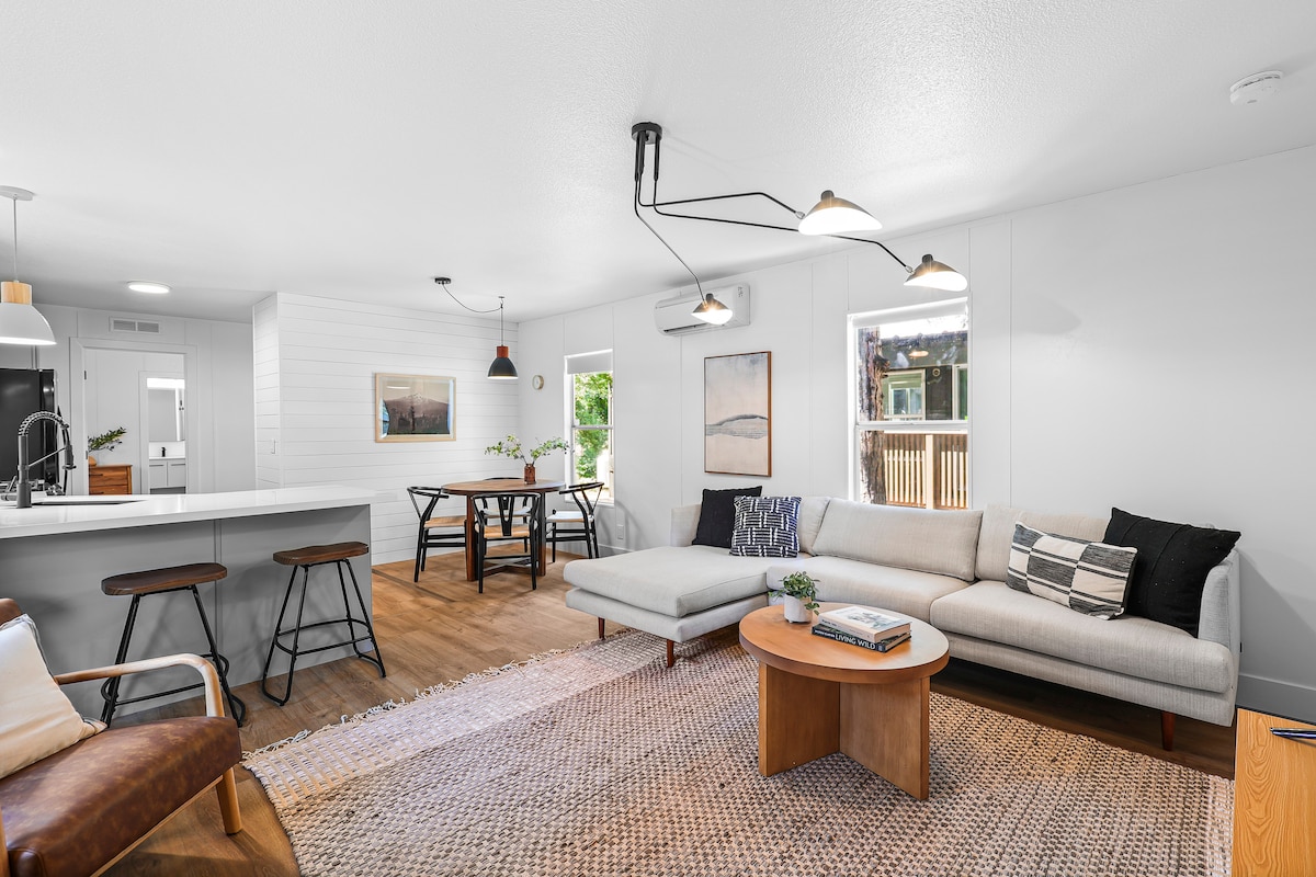 Alójate cómodamente en las montañas de Shasta en esta cabaña de lujo de 2 dormitorios. Ubicado en 6 acres de espacio boscoso, este hermoso refugio cuenta con 1 cama tamaño king, 1 cama tamaño queen y 1 litera, perfecto para familias o amigos. Disfruta de la moderna sala de estar con una acogedora chimenea eléctrica, TV inteligente y sofá cama para espacio adicional o relájate en la encantadora sala de estar con estufa de leña y vistas al aire libre. Con servicios como wifi, calefacción y lavandería, tu estancia será estupenda.