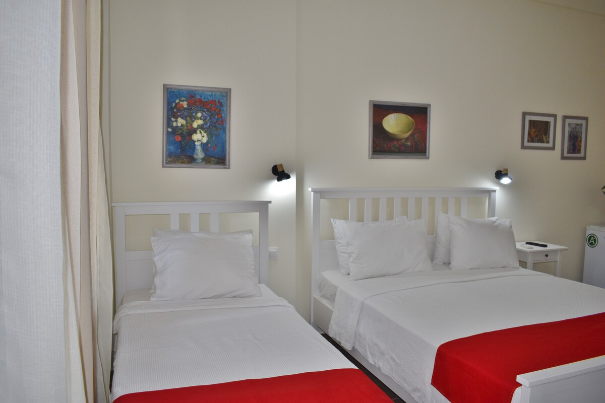 Las habitaciones familiares de lujo están diseñadas para familias con niños. Algunas habitaciones tienen terraza, mientras que otras habitaciones ofrecen balcones con mesa y sillas al aire libre. Cada habitación familiar Deluxe tiene dos espacios separados por una puerta. Primer espacio: sofá plegable, Segundo espacio: 2 camas individuales o una cama tamaño king Cada habitación está equipada con cocina pequeña (refrigerador, estufa eléctrica y hervidor de agua, fregadero) y juego de vajilla necesario. Relájate con tu familia o amigos en este tranquilo hotel ecológico de 29 habitaciones.