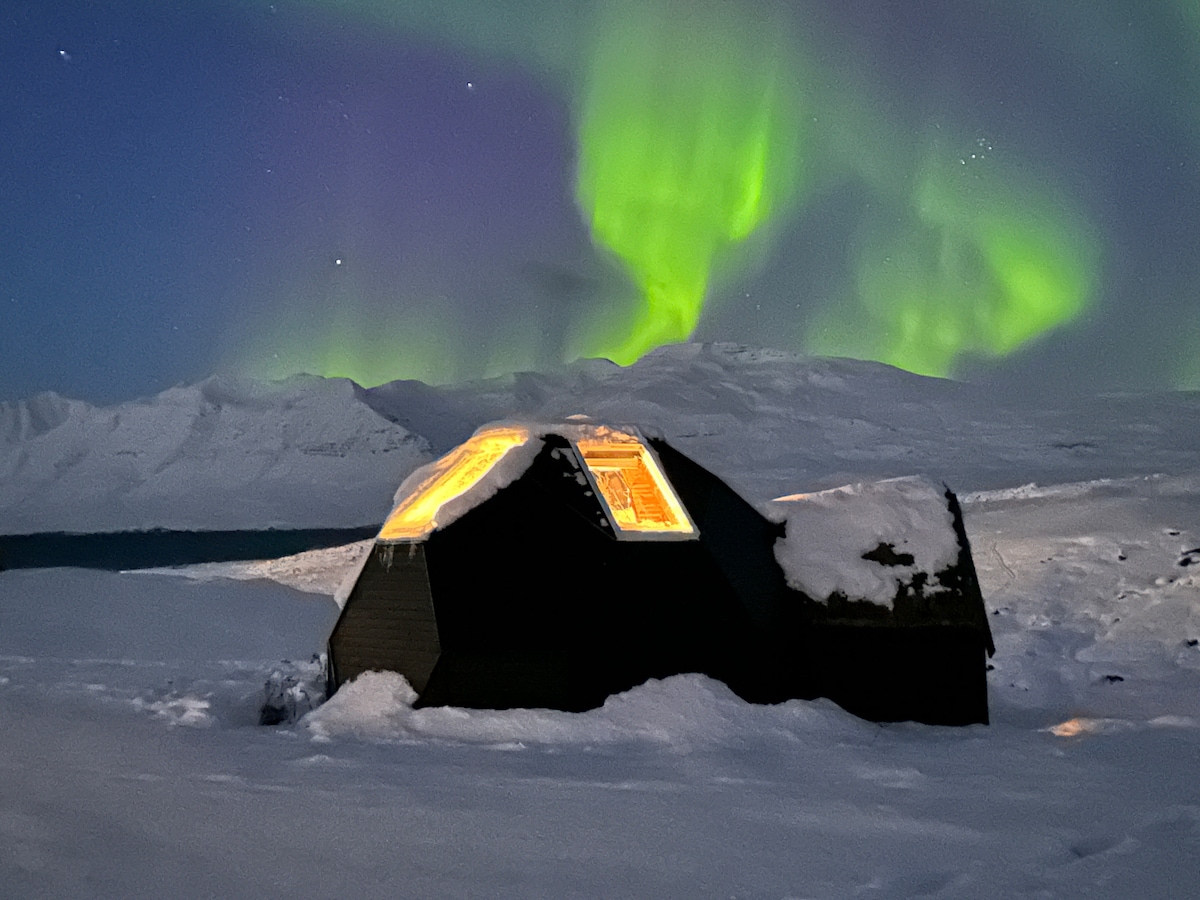 Bienvenido a mi cabaña entre dos hermosos valles en el corazón de las majestuosas montañas de la península de Troll, a solo 12 minutos en coche de la ciudad de Dalvík. Ubicada en una colina, ofrece impresionantes vistas de los picos y el glaciar circundantes. Ideal para los amantes de la naturaleza y aquellos que anhelan tranquilidad, la cabaña está totalmente equipada, climatizada y ofrece wifi rápido. Es el punto de partida perfecto para explorar la zona con avistamiento de ballenas, paseos a caballo, jacuzzi, un spa de cerveza, fiordos, senderos y restaurantes a poca distancia en coche.