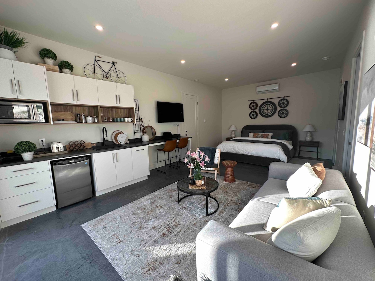 Diseño minimalista y cuidado para lograr la máxima paz y comodidad. Recién construida y diseñada para hospedar, tu suite limpia se encuentra en el hermoso sendero Test of Humanity. Disfruta caminando, en bicicleta o contemplando las espectaculares vistas directamente desde tu suite o en tu balcón cubierto. Los anfitriones han vivido en la zona durante décadas y pueden guiarte a la amplia variedad de atracciones, actividades y placeres cercanos que ofrece la zona. ¡Ubicada a pocos minutos del centro de la ciudad, pero se ve y se siente como un refugio en la naturaleza!