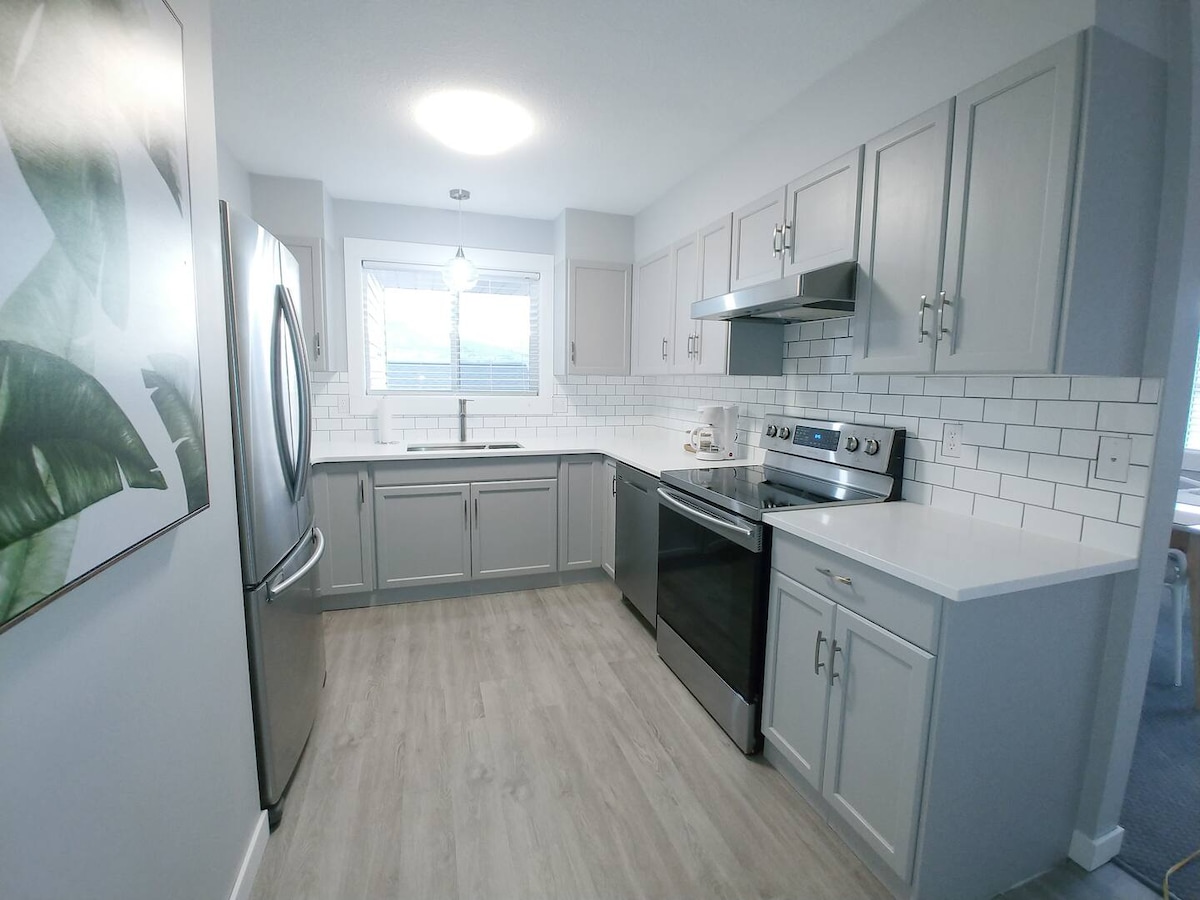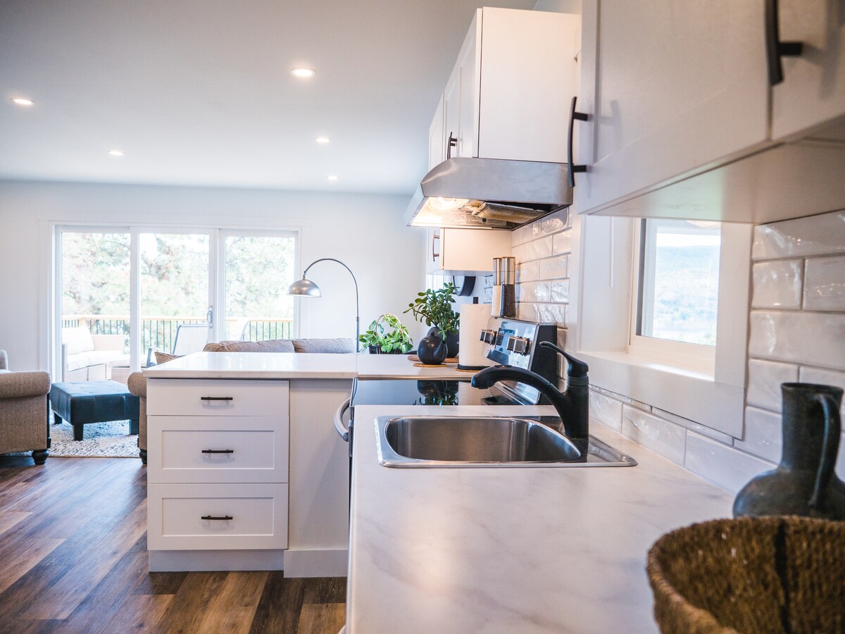 Bienvenido a nuestra moderna y céntrica casa, esta hermosa suite está a 5 minutos en coche del lago Skaha y a 10 minutos en coche del lago Okanagan. La suite tiene su propia entrada privada sin llave. Cada dormitorio tiene su propia cama tamaño queen. La lavadora y la secadora están incluidas en la suite para uso de los huéspedes. La suite cuenta con una cocina totalmente equipada, TV inteligente, plaza de aparcamiento privado, aire acondicionado y patio independiente para disfrutar de tus noches tranquilas.