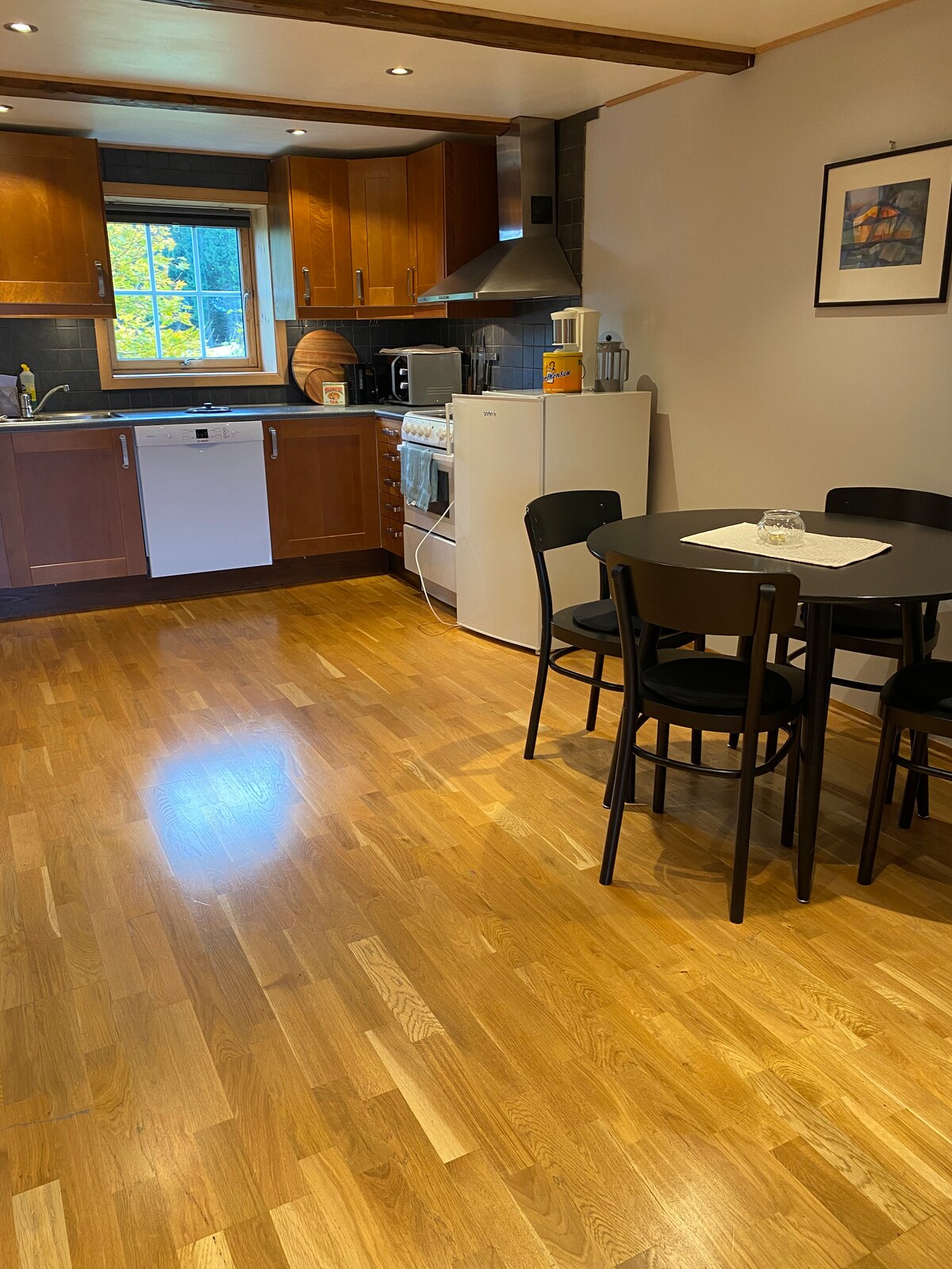 ¡Bienvenido a nuestra encantadora casa de campo a las puertas de Bymarka! Aquí puedes disfrutar del silencio, beber tu café de la mañana con una amplia vista y dejar que los días se llenen de viajes, aire fresco y una calma que solo la naturaleza puede proporcionar. Cuando llega la noche, puedes acurrucarte frente a la chimenea, escuchar el crepitar de la madera y sentir que tus hombros se relajan. La cabaña es sencilla y acogedora, con un interior nostálgico y el alma de una época pasada. Un lugar para quienes quieren relajarse, vivir despacio y disfrutar de toda la belleza.