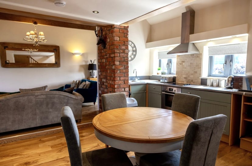 Granero convertido de lujo en la hermosa zona rural de Lincolnshire. El Lodge en Thorpe House es un impresionante, totalmente único, espacioso, recién reformado y bien equipado Lodge, lleno de carácter que combina hermosos muebles antiguos con una impresionante araña de baile de castillo francés del siglo XIX de 5 pies y una nueva cocina de planta abierta totalmente equipada, comedor y sala de estar. Suelo de roble. Una puerta de cinco barras conduce a un aparcamiento de grava y un bonito arco ornamentado conduce a un jardín cerrado totalmente privado.