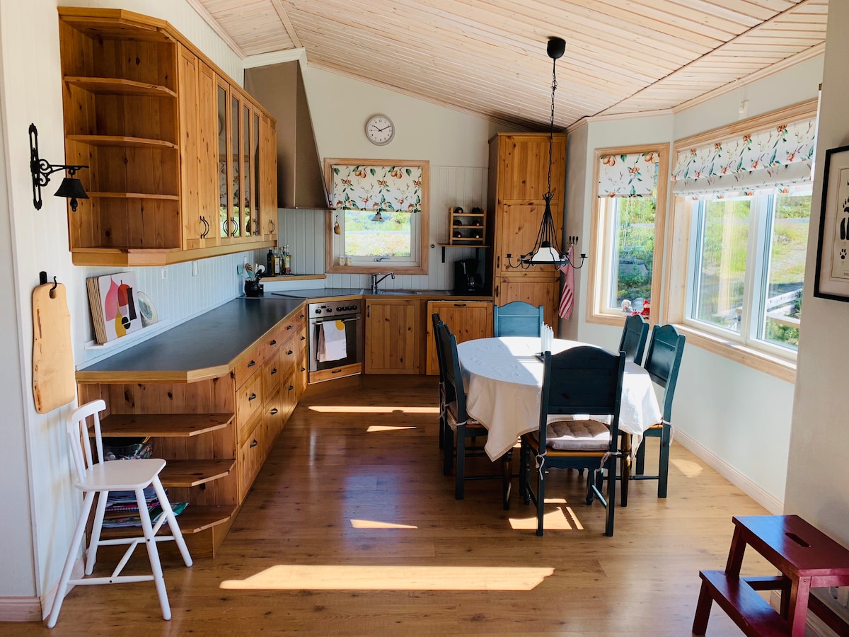 Los grandes ventanales dejan entrar la naturaleza y la luz. Una acogedora mezcla de madera clara, detalles vintage personalizados y toques orientales. Vives cerca de vastas zonas silvestres en Grövelsjön y Foskros, tres estaciones de esquí y pesca con mosca en Storån, así como el vecino Idre Golf. Tienes un bonito bosque detrás de la colina con arándanos y setas, un sendero peatonal arado de 3,5 km y un chapuzón frío en el río a diez minutos a pie. Además de carriles bici. Esperamos que te encante nuestra casa y la naturaleza que ofrecen Idre y los alrededores.