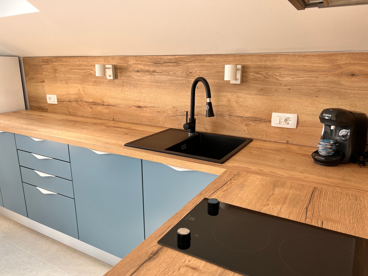 El apartamento Blue Lagoon tiene 70 m2 más una gran terraza de 45 m2 con vistas al mar. Perfectamente ubicado en el corazón del parque forestal Marjan, con unas vistas absolutamente impresionantes al mar y a las islas. Desde la gran terraza se puede disfrutar de una hermosa puesta de sol. ¡Este es el lugar ideal para los huéspedes que buscan paz!