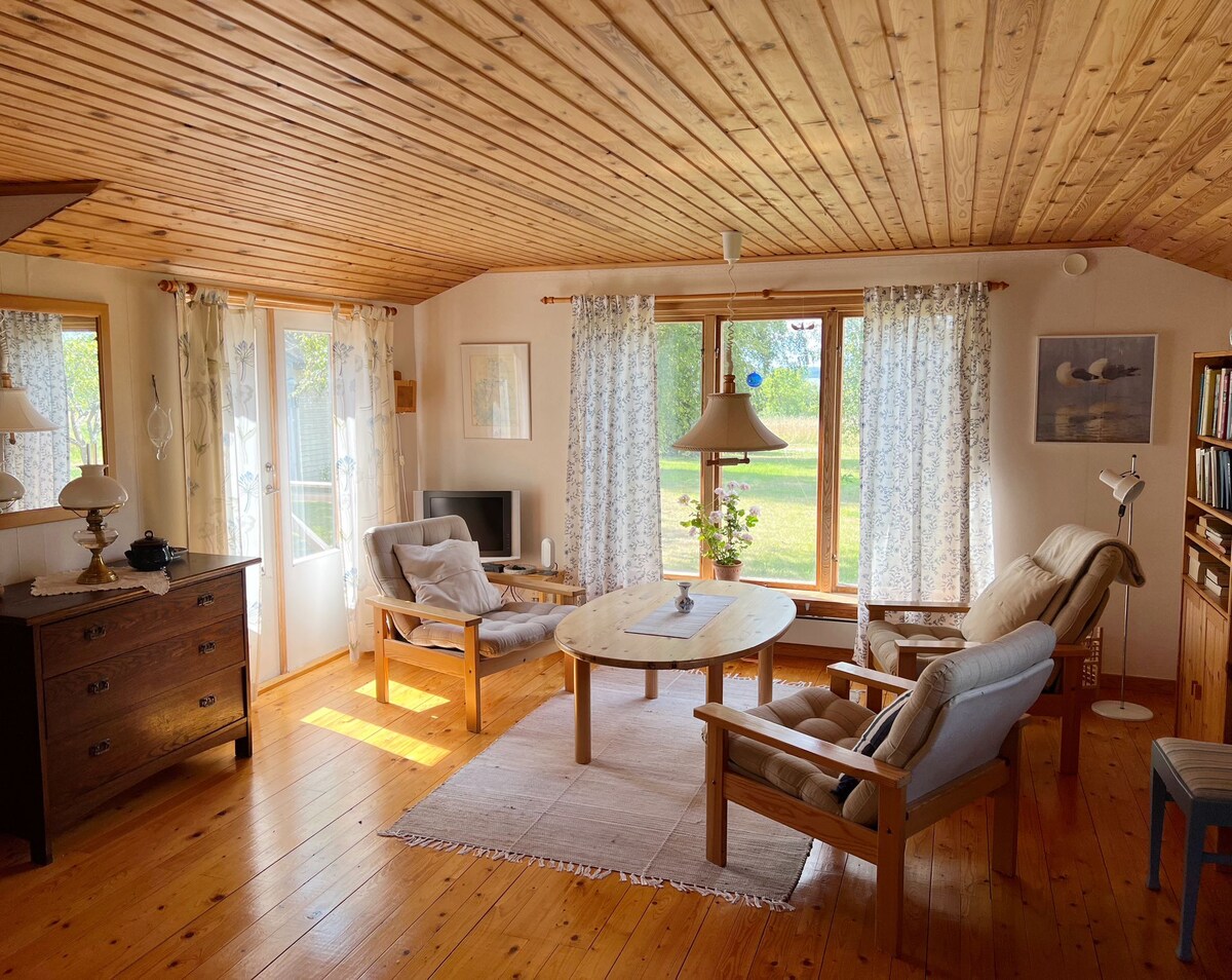 Bienvenido a un encantador estudio de 38 m2 con hermosas vistas al lago desde el balcón. Se pueden ver aves ricas, zorros y ciervos con el tubo binario. Baja las bicicletas hasta el puerto. Disfruta de nuestra sauna de leña y luego duerme en la cómoda cama. Ofrecemos aire fresco, serenidad, silencio y grifo de agua potable bueno y limpio. Excelentes rutas de bicicletas/senderismo en una bonita naturaleza y paisajes culturales con edificios medievales. A 50 km de Visby. A 13 km de Fårösund. A 5 km de la parada de autobuses. Contamos con cargador de coche. Tú te encargas de la limpieza tú mismo.