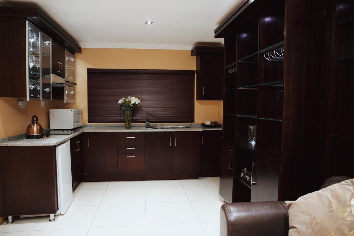 Hermosa unidad privada separada de 36 metros cuadrados con baño privado (ducha GRANDE, inodoro y lavabo) y una terraza privada (con cerradura). La unidad es una entidad separada y se alquila como tal. Tiene una cama tamaño queen, así como un sofá (cama individual) con capacidad para 1 niño (menor de 12 años). Decodificador de vista abierta, cocina pequeña y estacionamiento encubierto. Cerca de la frontera con Botsuana y la autopista N4. El precio indicado es para cada unidad (máximo de 2 adultos que comparten una cama tamaño queen y 1 niño u/12). Niños adicionales: la segunda unidad debe alquilarse.