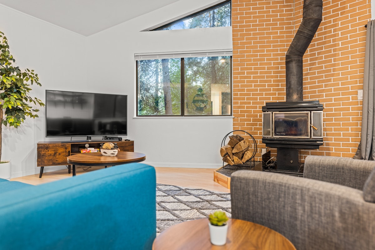 Perfectamente ubicada a 5 minutos del centro de la ciudad y del tranquilo Sly Park Recreation Area/Jenkinson Lake, esta acogedora cabaña hace que sea fácil sumergirte en la aventura. Con las granjas de Apple Hill a solo 10-15 minutos, Placerville a 20 minutos cuesta abajo y South Lake Tahoe a 45-60 minutos en auto, nunca estarás lejos de la diversión. Pero la verdadera magia sucede en casa. Despiértate con el aire fresco del bosque, relájate en la terraza con una taza de café y deja que la tranquilidad de la naturaleza sea tu banda sonora diaria