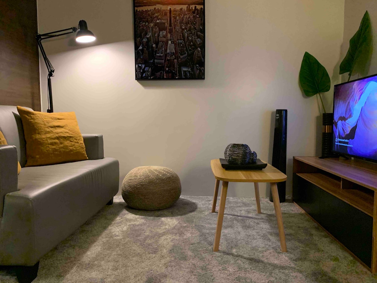 *Muebles renovados: acogedor sofá cama que se convierte fácilmente en una cómoda cama de tamaño completo. 🛋️ ¡Le damos la bienvenida a The Cozy Metropolis! ✨ Ubicado en el corazón de Makati, nuestro condominio ofrece la combinación perfecta de comodidad urbana y confort acogedor. Al entrar, le recibirá un ambiente cálido y acogedor, con una decoración elegante pero hogareña, muebles lujosos e iluminación suave. Es el refugio perfecto para relajarse y descansar después de un ajetreado día en la ciudad.