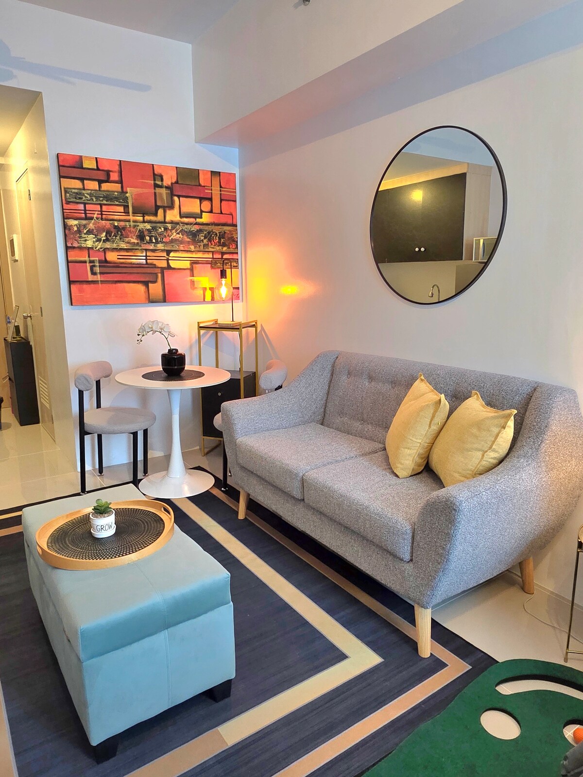 ¡Bienvenido a nuestro espacioso Tahanan de inspiración mediterránea y contemporánea, un estudio de 25 metros cuadrados en Mandaluyong, a pocos pasos de Rockwell y Powerplant Mall! Hemos diseñado nuestro espacio para proporcionar una estancia cómoda mientras capturas impresionantes vistas del atardecer, así como vistas de Mandaluyong y Makati desde nuestro balcón. Ya sea que estés de visita por trabajo, placer o una combinación de ambos, nuestro Airbnb bien equipado es la base perfecta para explorar las vibrantes ciudades de Mandaluyong y Makati.