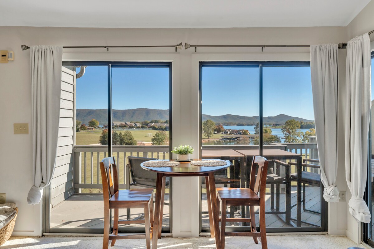 ¡Fantástica escapada en el precioso lago Smith Mountain! Disfruta de unas vistas impresionantes a dos lados de este apartamento de esquina en la planta superior con terraza envolvente y sombra natural. ¡Es perfecto para un descanso relajante o una aventura! Las actividades incluyen paseos en bote (con muelles para invitados), natación (interior y exterior), pickle ball, hacer ejercicio y relajarse en el jacuzzi, la sala de vapor o la sauna. Si trabajas a distancia, este espacio tranquilo incluye un escritorio y conexión inalámbrica de alta velocidad. La unidad individual de HVAC también tiene una luz UV.