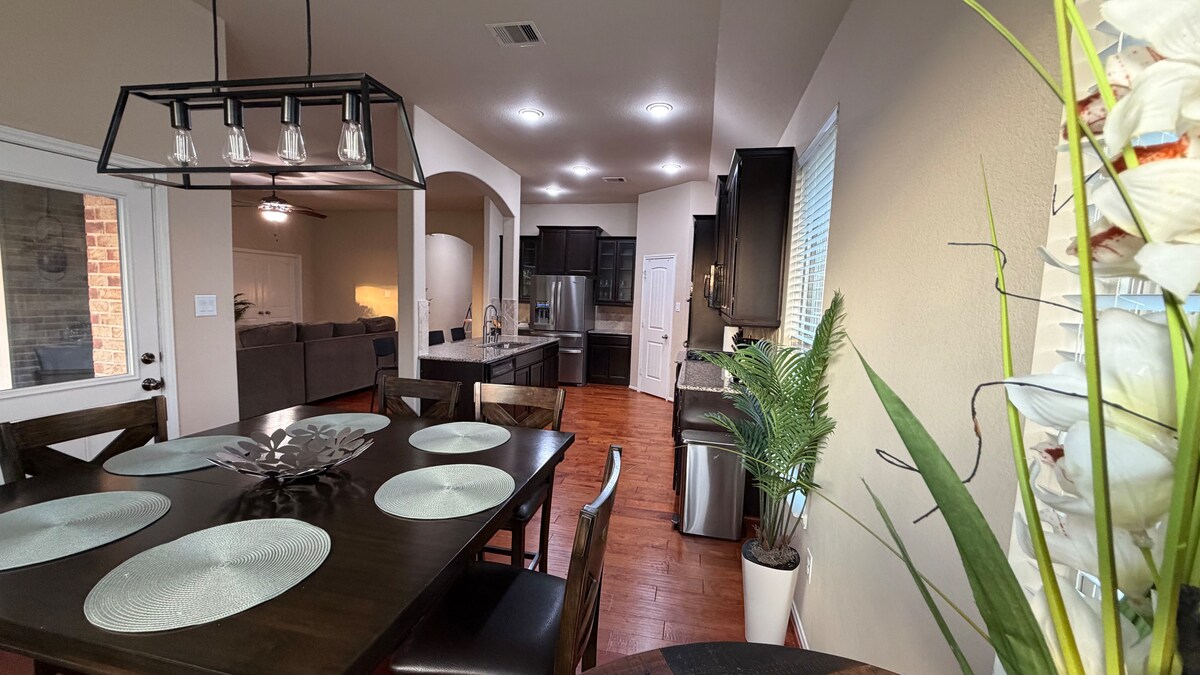 Amplia casa de 5 dormitorios y 3 baños perfecta para familias y grupos. Disfruta de una sala de juegos llena de diversión con mesas de ping pong y air hockey. Cada dormitorio incluye un televisor inteligente para una privacidad relajante. La sala de estar abierta y la cocina totalmente equipada facilitan las reuniones. Sal a un gran patio trasero cercado, ideal para juegos al aire libre o para relajarte bajo las estrellas. Tu escapada perfecta para la comodidad, el entretenimiento y la conexión.