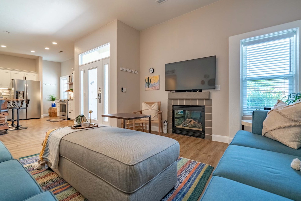Ven a disfrutar de una escapada tranquila en esta hermosa casita de lujo ubicada en el complejo cerrado de Encanto. Podrás disfrutar de espectaculares vistas de rocas rojas de Snow Canyon desde tu patio privado con chimenea. La Casita se encuentra en una excelente ubicación a la vuelta de la esquina de los servicios que incluyen piscina climatizada, jacuzzi, gimnasio y canchas de pickleball. A pocos minutos de: - Campo de golf Black Desert - Parque Estatal Snow Canyon - Rutas de senderismo - Pruebas de bicicleta - Spa Red Mountain - Teatro Tuacahn