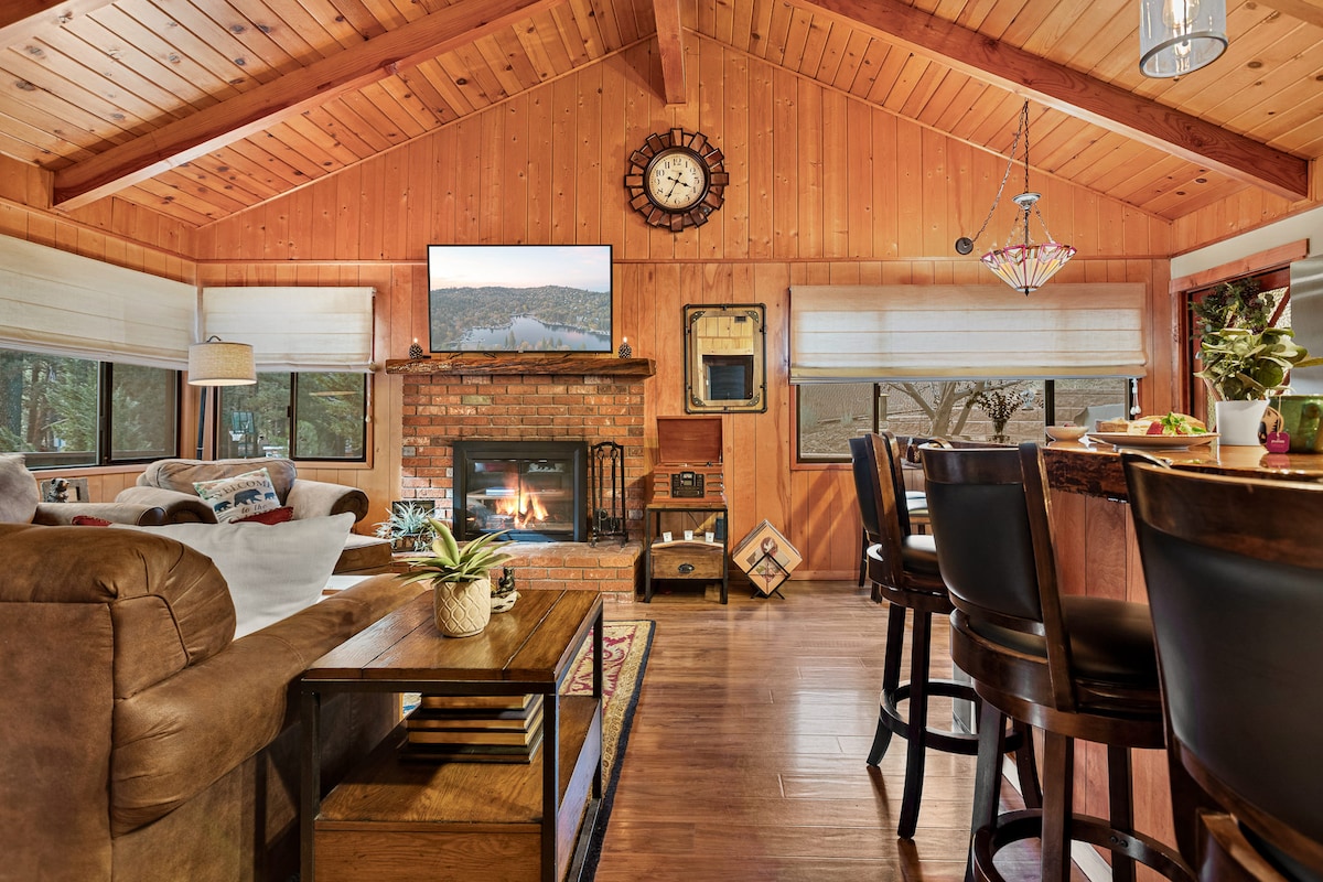 Atraviesa una puerta con marco de madera en forma de A para adentrarte en esta encantadora cabaña de estilo serrano con techos abovedados con vigas de madera y ventanas tragaluz. Siéntate a desayunar en una mesa de madera en bruto, luego siéntate en un sofá diván y toca una melodía folclórica en la guitarra acústica. - Ubicada justo entre Bear Mountain y Snow Summit Ski Resorts (¡algunos de nuestros vecinos incluso caminan hasta las pistas!) - ¡Muy cerca del lago Big Bear! - ¡A pocos minutos de los restaurantes y tiendas de la encantadora y animada Big Bear Village! - ¡Barrio tranquilo con rutas locales de senderismo y ciclismo para los entusiastas del aire libre (el Bosque Nacional está a un paso de distancia)! - ¡A tiro de piedra del campo de golf Bear Mountain, así como del zoológico alpino Big Bear! - ¡Parrilla exterior incorporada, casa de juegos para niños, columpio de madera y chimenea ubicada en el patio trasero! - ¡Películas, juegos de mesa, discos de vinilo antiguos, tocadiscos y guitarra proporcionan el entretenimiento! - Capacidad para 4 personas cómodamente con una entrada para 2 coches. - Síguenos en Instagram: @yemodernrustic. ¡Etiquétanos en tus aventuras en Big Bear! Ye Modern Rustic es apto para familias y para un máximo de cuatro huéspedes que buscan una experiencia cálida y acogedora en Big Bear. La decoración es rústica moderna y está destinada a maximizar la comodidad, la amplitud y la funcionalidad. La cabaña tiene poco menos de 900 pies cuadrados, por lo que tendrás mucho espacio para relajarte. Ubicada entre las dos estaciones de esquí locales de primera categoría y a poca distancia en coche de Big Bear Village, te resultará difícil encontrar un lugar más céntrico. Ya sea que pases un largo día en las pistas, senderos locales, campo de golf o lago, ten la seguridad de que volverás a casa a una cabaña equipada con comodidades modernas que están diseñadas para permitir una noche relajante frente a la chimenea o afuera bajo las estrellas haciendo s'mores. Ideal para familias: Ye Modern Rustic es una cabaña familiar. Además de nuestra proximidad a las pistas, el lago, las rutas de senderismo y el zoológico, hay un gran espacio de entretenimiento en la sala de estar. Haz que los adultos o los niños vean una película de nuestra amplia biblioteca de DVD y Blu Ray (¡tenemos títulos para todas las edades!). Para los aventureros al aire libre, haz que los niños se aventuren afuera para usar su imaginación en la casa de juegos convertida ubicada en nuestro patio trasero (visible desde la cocina). La cabaña también está equipada con lavadora y secadora para los pequeños accidentes de la vida. Cocina: Si una comida fuera en la ciudad te parece agotadora, tendrás la flexibilidad de quedarte y cocinar. Nuestra cocina está equipada con ollas, sartenes, platos, cristalería y utensilios. Si no estás seguro de lo que podríamos tener, pregúntanos. Además de nuestra parrilla de barbacoa al aire libre de acero inoxidable incorporada, ofrecemos cafetera, tostadora, microondas y nevera. ¡Nuestra estufa de gas te permite preparar una comida para todo el equipo! Chimenea: La chimenea de leña es totalmente funcional y te mantendrá caliente en las noches más frías. Coge un poco de leña de una gasolinera local o de una tienda de comestibles (puedes encontrarla en cualquier lugar) y disfruta de una noche frente al fuego. ¡Nuestro personal de limpieza se encargará de las cenizas, así que no tendrás que limpiar! Dormitorios: El dormitorio principal contiene una cama tamaño queen, mientras que el segundo dormitorio tiene una litera con un colchón individual en la parte superior y un colchón completo en la parte inferior. Todos los colchones están equipados con cómodas sábanas, ropa de cama y fundas de almohadas. Nuestro equipo de limpieza lavará la ropa de cama cuando te vayas, así que no tendrás que limpiar. Ambos dormitorios cuentan con ventiladores de techo, así como armarios vacíos y aparadores que permiten un amplio almacenamiento en estancias más largas. ¡Deshaz las maletas y quédate un tiempo! Baño: El baño compartido se ha actualizado con buen gusto con accesorios modernos y suelos de baldosas nuevos. Hay un calentador de techo temporizado para ayudarte a pasar las mañanas de invierno más frías. Hay toallas limpias disponibles para todos, además de un amplio suministro de papel higiénico, champú, acondicionador y gel de baño. Entretenimiento/wifi: Nuestra cabaña está habilitada para wifi, por lo que, además de elegir entre nuestra biblioteca de títulos de películas, nuestro gran reproductor de HDTV/Blu Ray es compatible con Netflix, HBOGo y Hulu (tendrás que iniciar sesión con tu cuenta). Juegos de mesa clásicos (Monopoly, LIFE, Sorry!, Operation, Uno y más) están disponibles y permiten pasar una noche divertida con amigos o familiares. Prueba nuestra colección de discos de vinilo vintage seleccionados mientras disfrutas de una noche de juegos o una acogedora conversación junto al fuego. ¡Pon algunas canciones de fogata o coge nuestra guitarra acústica y escribe la tuya! Patio trasero: Nuestro patio contiene una nueva parrilla de barbacoa de 4 quemadores incorporada (las herramientas para asar están disponibles en los armarios de la cocina), además de un columpio de madera y un pozo para el fuego. ¡Rodéate de altos pinos, haz s'mores y relájate con una noche tranquila bajo las estrellas! Mantén a los niños ocupados con una casa de juegos amueblada con una cocina de juegos y un juego de médicos. Con nuestro soporte de papel de sobremesa (suministramos el rollo de papel de dibujo y los marcadores), ¡pídeles que dibujen una obra maestra inspirada en la naturaleza! Basura: Debido a nuestra ubicación en las montañas y a los animales locales que viven allí, toda la basura debe llevarse al Clean Bear Site en 41970 Garstin Dr, Big Bear Lake, CA 92315. Cada bolsa de basura qu