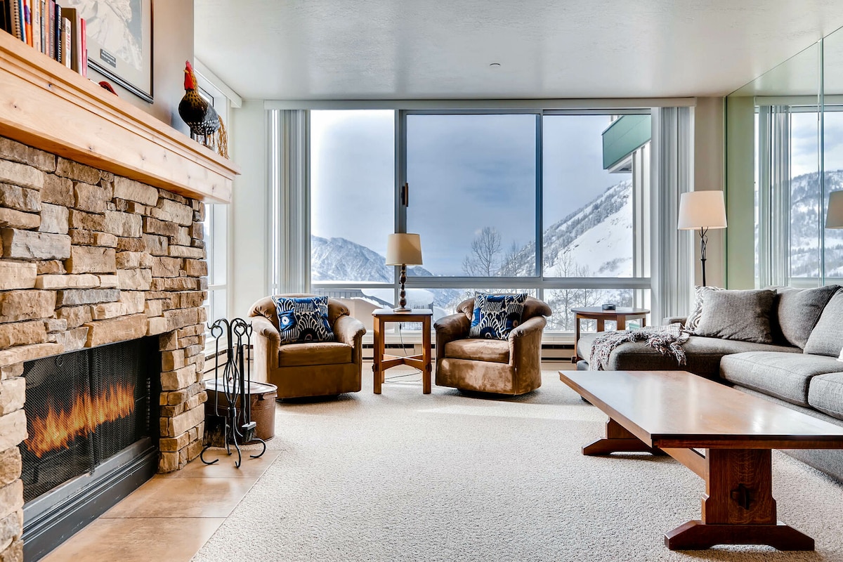 ¡La mejor ubicación de Park City! Después de un día en los senderos, este espacioso departamento remodelado ofrece un refugio perfecto. Prepare una comida gourmet en la cocina totalmente equipada, sírvase un cóctel, contemple las vistas a la montaña desde su terraza privada o relájese en su propia bañera de hidromasaje privada y apartada. Ambos dormitorios cuentan con sábanas y colchones de primera calidad y su propia entrada al patio de la bañera de hidromasaje. *A 5 minutos a pie de Main Street * Estacionamiento subterráneo reservado *Recién remodelada *25 % de descuento en alquiler de esquís