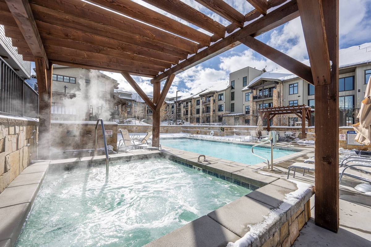 ¡Elegante y moderno 2 dormitorios a 2 manzanas de esquí y golf!