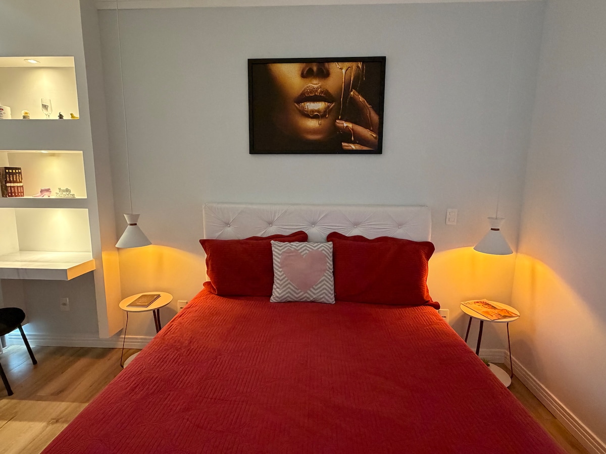 Encantadora suite llena de personalidad, un pueblo italiano único y tradicional. Situado en el centro de Serra Negra frente a la Iglesia Matriz, a 300 metros de la Fontana di Trevi, acceso a pie a la plaza central, principales bares y restaurantes, junto a un estacionamiento 24 horas. Cuenta con baño y ducha privados, equipados con AIRE ACONDICIONADO, Smart TV, minibar, edredón incluido, ropa de cama y toallas. Tenemos un rincón de café comunitario. Nota: ¡no tenemos desayuno ni servicio de habitaciones!