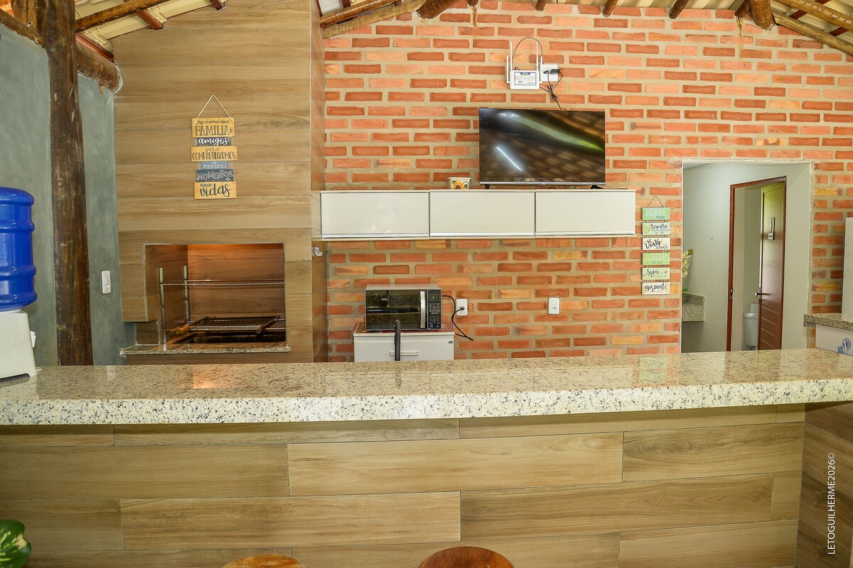 Vive momentos inolvidables en este lugar único, ideal para tu familia. La Chácara tiene cuatro suites y dos baños, una zona gourmet completa, una mesa de billar, un parque infantil, un campo de fútbol, una cancha de arena, una piscina climatizada con jacuzzi, hamacas, una chimenea al aire libre, un pequeño lago y una hermosa cascada frente a la piscina, un lugar único para descansar y disfrutar de momentos inolvidables con amigos y familiares.