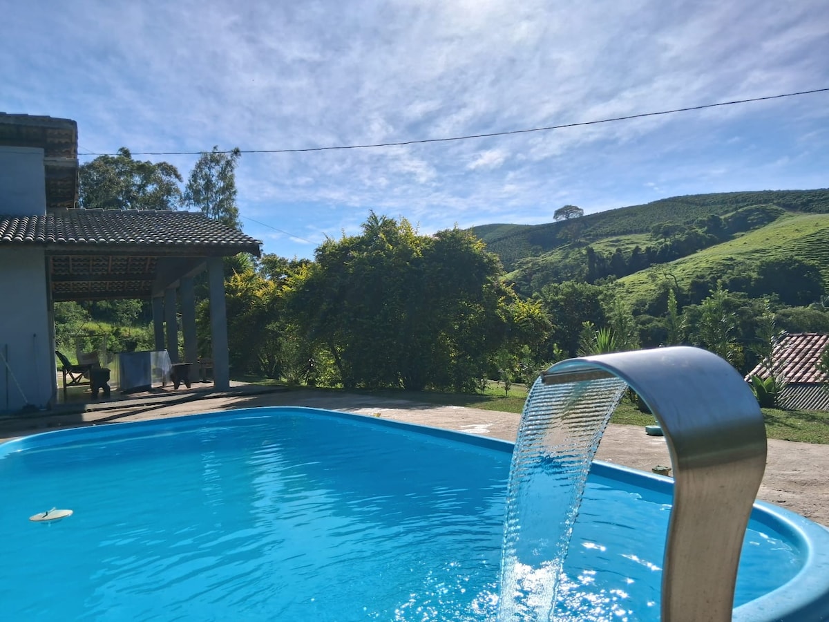 O sítio esta super bem equipado para receber você e sua família. Com uma vista encantadora para as montanhas. A casa acomoda 15 pessoas Os hóspedes terão acesso exclusivo a toda a propriedade O sítio é pet-friendly 🐱 🐶 Churrasqueira Forno de pizza Piscina Lago para pesca 3 quartos 2 banheiros Área gourmet 2 TV led 50’ com netflix, Sky Wi-Fi Na cozinha fornecemos todos os utensílios, as tomadas sao 110V e algumas com marcações 220V Esta a 15 km da cidade com localização de fácil acesso.