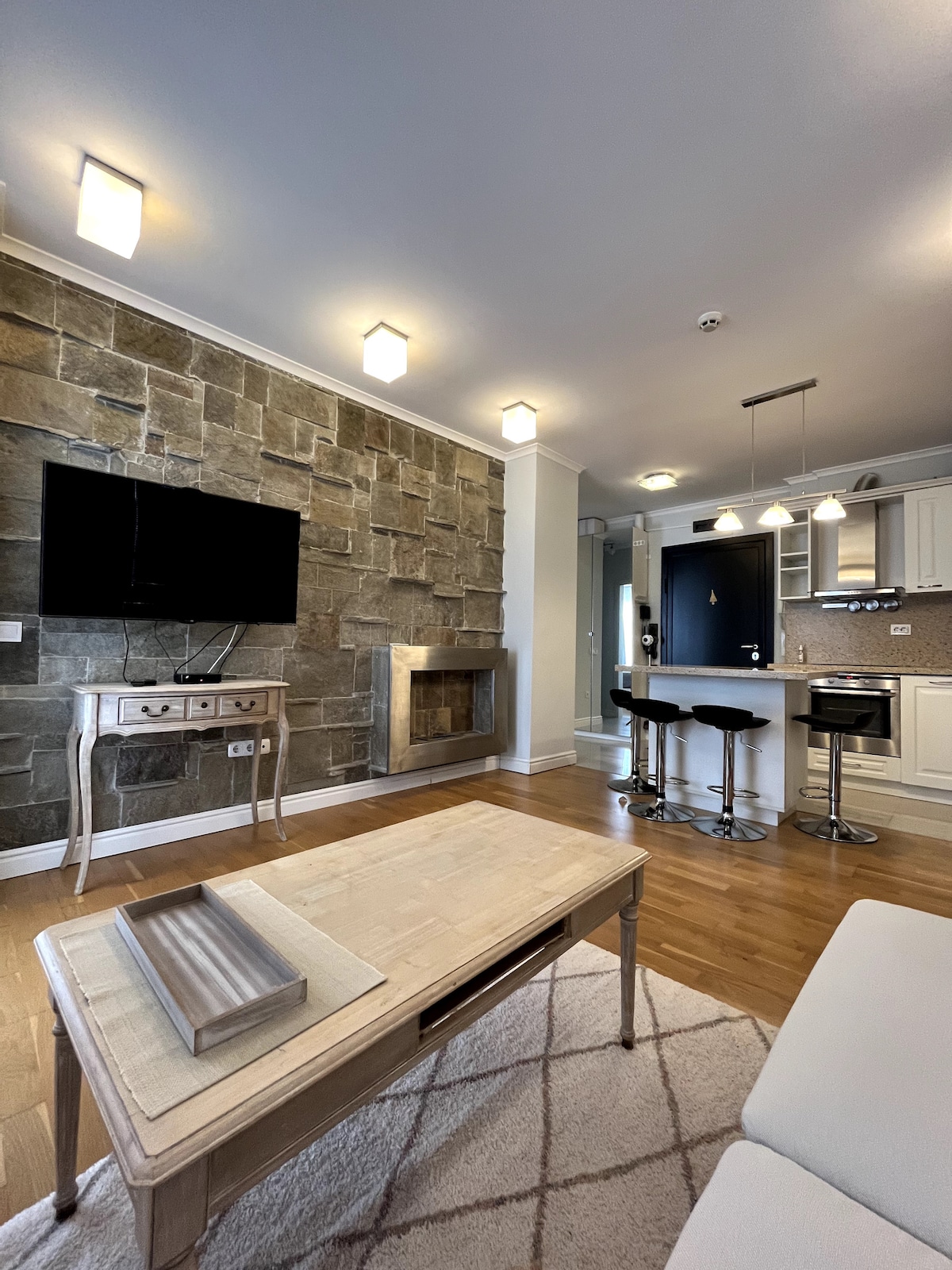 Experience a refined stay in this elegant designer apartment featuring a cozy electric fireplace and private balcony, set in a quiet yet well-connected area of Sofia. Ideal for both business and leisure. Minutes from the metro, close to Business Park, universities and Ring Mall, 5 min to the Ring Road and 15 min to the airport. High-speed Wi-Fi, Smart TV and a fully equipped kitchen. Final price with no hidden fees.