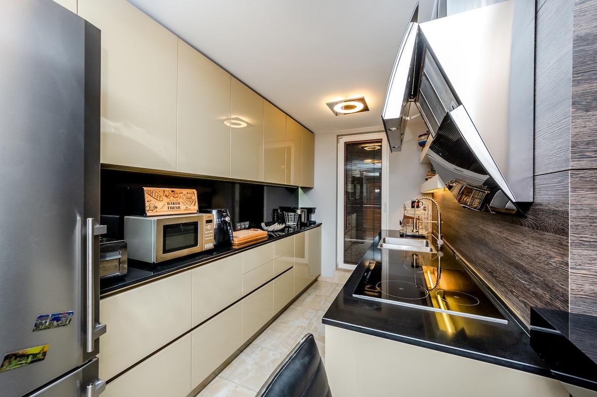 Este pequeño y acogedor apartamento con increíbles vistas a la montaña está ubicado en un edificio residencial nuevo en una zona tranquila, pero muy cerca del centro de Studentski grad, que ofrece una variedad de restaurantes, bares de cócteles, bares de huka, clubes nocturnos y muchos más. También está a 6 minutos del Sofia Ring Mall, donde encontrarás muchas tiendas y supermercados, así como muchos otros lugares de entretenimiento. El centro de la ciudad y el aeropuerto están a 15 minutos. El estacionamiento es gratuito para ti.