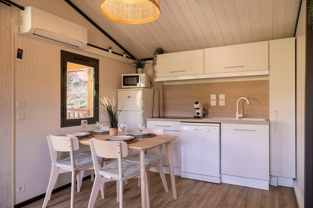 This renovated, bright, air-conditioned chalet offers a relaxing and comfortable getaway. Free access to the pool 7 days a week. Sauna and massages available at extra cost. ✨ What you’ll love: – Chalet (35m2) with air conditioning – Private terrace (15m2) – Free & fast Wi-Fi – Pool open daily apr-oct – On-site restaurant – 25 min to beaches and nearby Var hiking trails – Free parking place Perfect for couples or families, for a cozy break or a longer stay in the South of France.