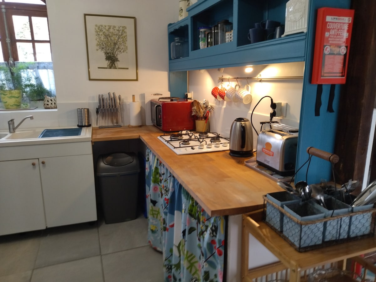 Encantadora casa con entramado de madera de 60 m² situada en pleno campo. Lugar ideal para reponer energías en un entorno tranquilo y verde Decoración rústica y equipamiento muy completo Las camas están hechas a su llegada Posibilidad de llegada autónoma Tiendas y restaurantes accesibles en coche Alojamiento especialmente equipado para estancias de unos días a varios meses Nuevo: La casa ahora está conectada a la fibra, lo que permite trabajar en buenas condiciones