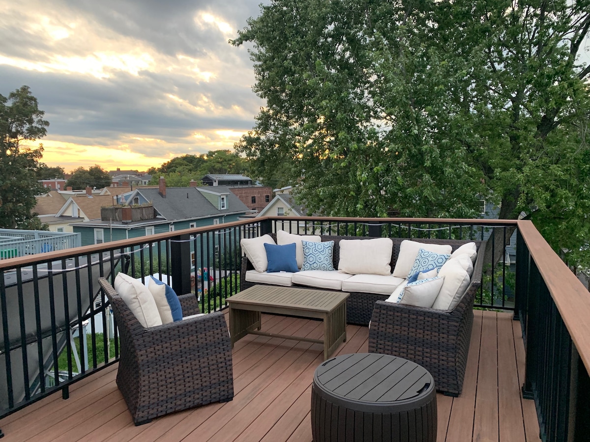 - Escápate a nuestra azotea privada. - ¡Aparcamiento! - A un paso de la nueva plaza Gilman. Parada T: 0,3 millas, 8 minutos a pie. - A pocos minutos en coche del centro de Boston. - Ubicado a pocas manzanas de Union Square, Somerville. A 5 millas/10 minutos a pie de la nueva parada de Union Square T. - A 5 minutos en coche y a 7 minutos en bicicleta de la Universidad de Harvard, cerca del MIT y de la Universidad de Tufts. A 25 minutos a pie de Harvard. - Wifi de alta velocidad de 1 gig. - Cocina americana con nevera, cafetera Keurig + cafetera de filtro, tostadora, microondas y fregadero para comidas ligeras.