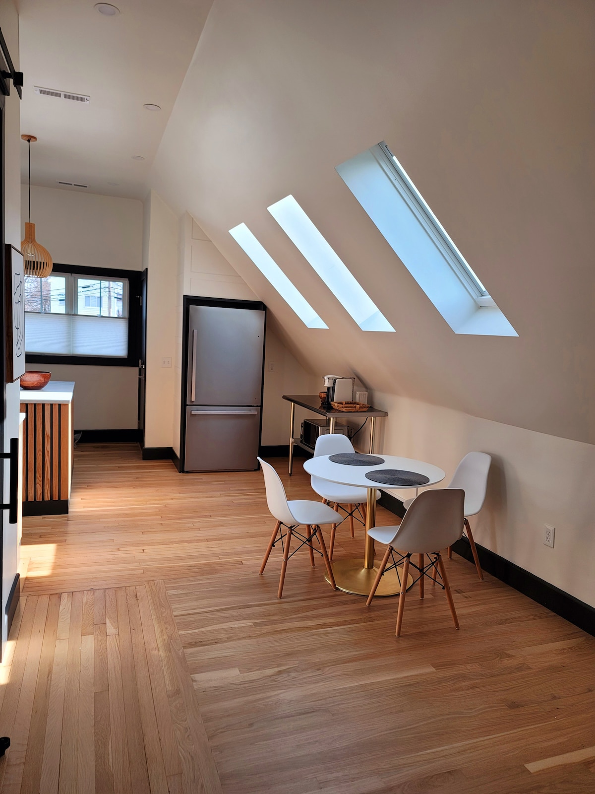 Te damos la bienvenida a Hipster Basecamp, un espacio seleccionado donde el diseño de mediados de siglo se combina con la comodidad moderna. Tanto si estás aquí por negocios como por placer, disfruta de detalles atrevidos como una chimenea de doble cara, electrodomésticos Smeg y una ducha de efecto lluvia montada en el techo. Prepara un espresso o mezcla cócteles con todo a tu alcance, y luego dirígete a la cubierta para relajarte y disfrutar de la apacible vista. Admira las obras de arte originales en todas partes, y si una pieza te llama la atención, está disponible para su compra.