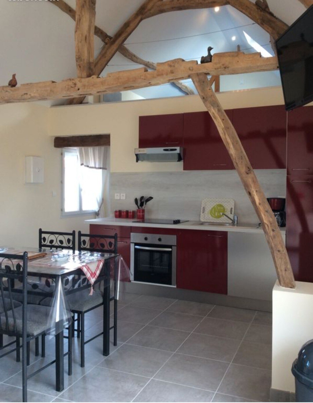 Relájese en esta casa rural con todas las comodidades, tranquila y elegante. Junto al bosque, que consta de una sala, sala de estar con un sofá cama de dos plazas que se puede separar , un dormitorio con una cama de dos personas, un escritorio, una cama supletoria para una persona, una cuna, televisor de pantalla grande, wifi gratuito, una cocina con todo el equipamiento, estufa de gas y horno eléctrico, nevera y congelador. Un baño equipado con lavabo y ducha, aseo independiente.