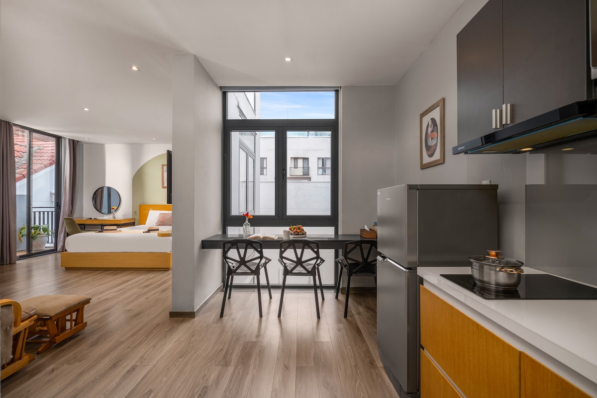 Enjoy a stylish balcony studio in one of the most iconic buildings in the city, famous for its rooftop infinity pool with breathtaking views. ✔ Comfortable king-size bed ✔ Private bathroom & hot shower ✔ High-speed WiFi ✔ Smart TV & air conditioning ✔ Fully equipped kitchenette 📍 Perfect location: * 5 mins to Han River * 10 mins to My Khe Beach * 15 mins to Da Nang International Airport Relax, swim, and enjoy the golden sunset from the rooftop pool — one of the best in Da Nang.