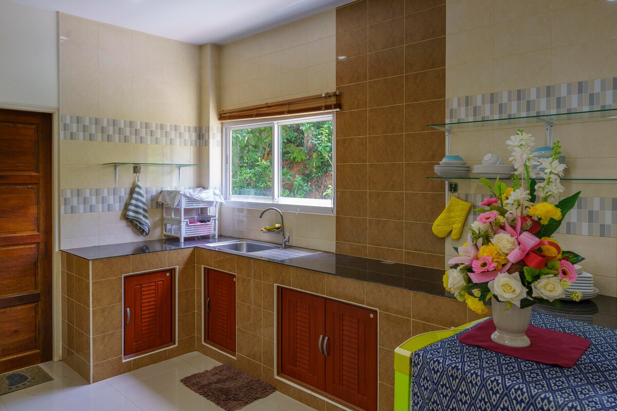 เที่ยวได้ทั้งครอบครัวเมื่อเข้าพักในที่พักใจกลางเมือง ใกล้สี่แยกคูหา ติดถนนสายเอเชีย บ้านมีบริเวณสามารถเข้าพักได้หลายคน มีธรรมชาติรอบบ้านแสนสงบ บรรยากาศดี มีต้นไม้รอบบ้าน มีทางเข้าออกหลายทาง สัญจรสะดวก