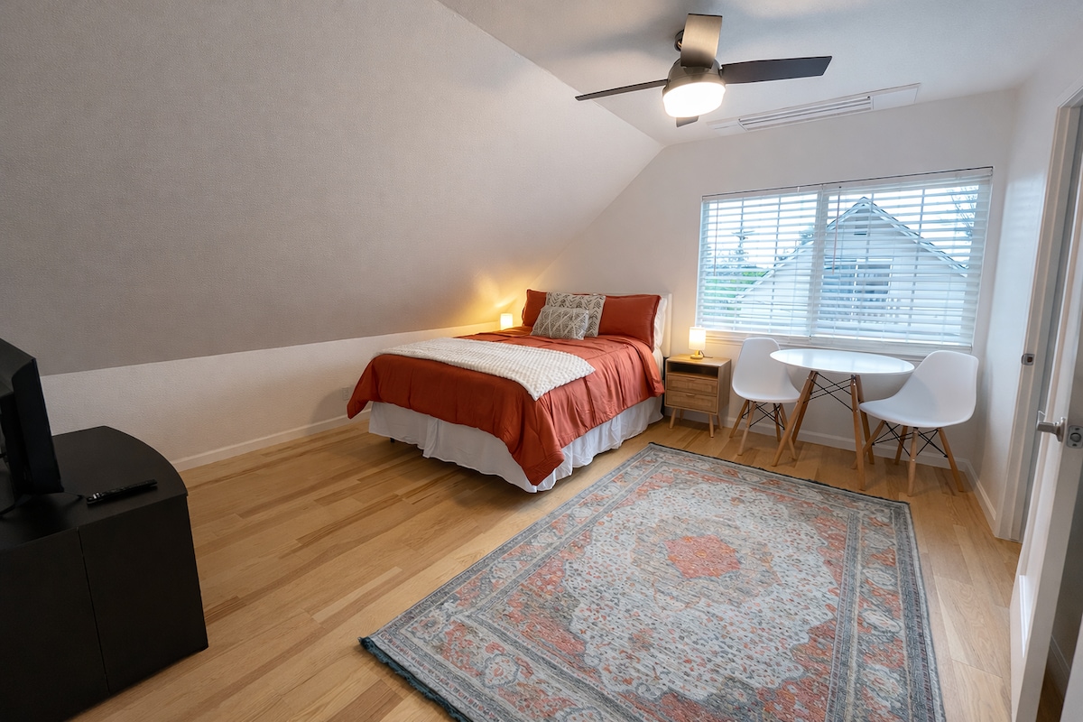 Tu segundo hogar está encima de nuestro garaje para 2 coches, 1 dormitorio, 1 baño, sala de estar, cocina completa y comedor. Hay un sofá cama doble en el salón. Las tiendas de comestibles locales están a menos de una milla, a 10 minutos en coche del centro de Santa Rosa, a 45 minutos en coche de la costa y a poco más de una hora de San Francisco. Estamos ubicados en el centro para explorar las bodegas, cervecerías y rutas de senderismo de Sonoma y el condado de Napa. Permiso #SVR23-170
