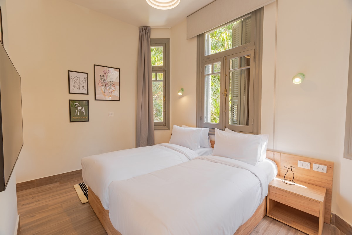 - 1611 y Haven Hospitality - Experience modern comfort in the heart of Zamalek, Downtown Cairo, at 1611 — a newly renovated and furnished 2-bedroom, 1-bath fifth-floor serviced apartment. Thoughtfully designed, it features a fully equipped kitchen and a private balcony with seating and city views. Perfectly located in the heart of Zamalek, steps from top cafés, galleries, and the Nile. Sleeps up to 4 guests.