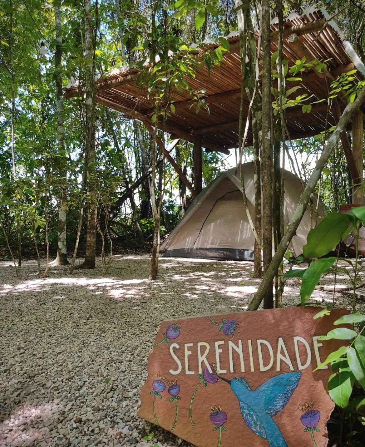 El glamping se encuentra en una zona de Mata Atlántica, donde nos despertamos con el canto de los pájaros y dormimos con la luz de las estrellas. El bosque está alrededor de la tienda y la playa a pocos minutos de distancia. El pueblo de Serra Grande tiene playas paradisíacas, así como varias cascadas. Vivir una experiencia offgrid y tranquila; en un pueblo con mucho encanto; con una naturaleza exuberante, es lo que hace que la estancia sea especial. El glamping está a 1,5 km de Vila de Serra Grande y a 3 km de la playa.