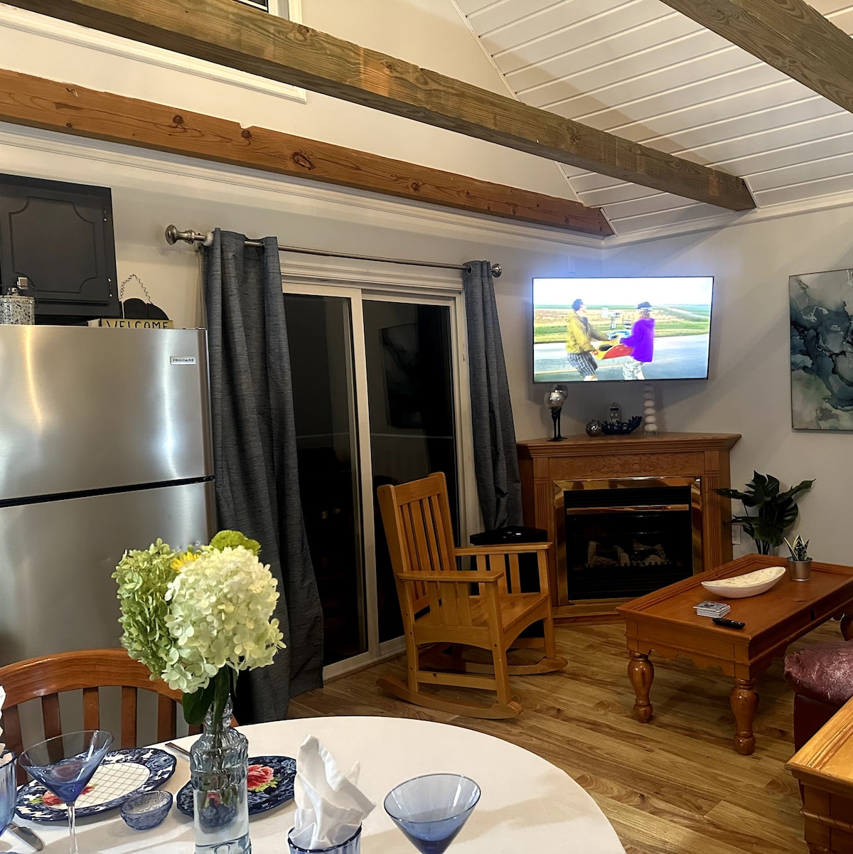 Si estás buscando un lugar para relajarte y desconectar, o tal vez un refugio romántico, nuestra pequeña casa de campo en el bosque ofrece un espacio privado e íntimo perfecto para tu próxima escapada. Wooded Hideaway es una casa de 1 dormitorio y 1 baño enclavada en los árboles en aproximadamente 4 acres a menos de una milla del lago Center Hill. Disfrutarás de total privacidad en la terraza delantera con hermosas vistas al atardecer, una cocina bien equipada, sala de estar con chimenea de leña y cama tamaño king para dormir perfectamente por la noche.