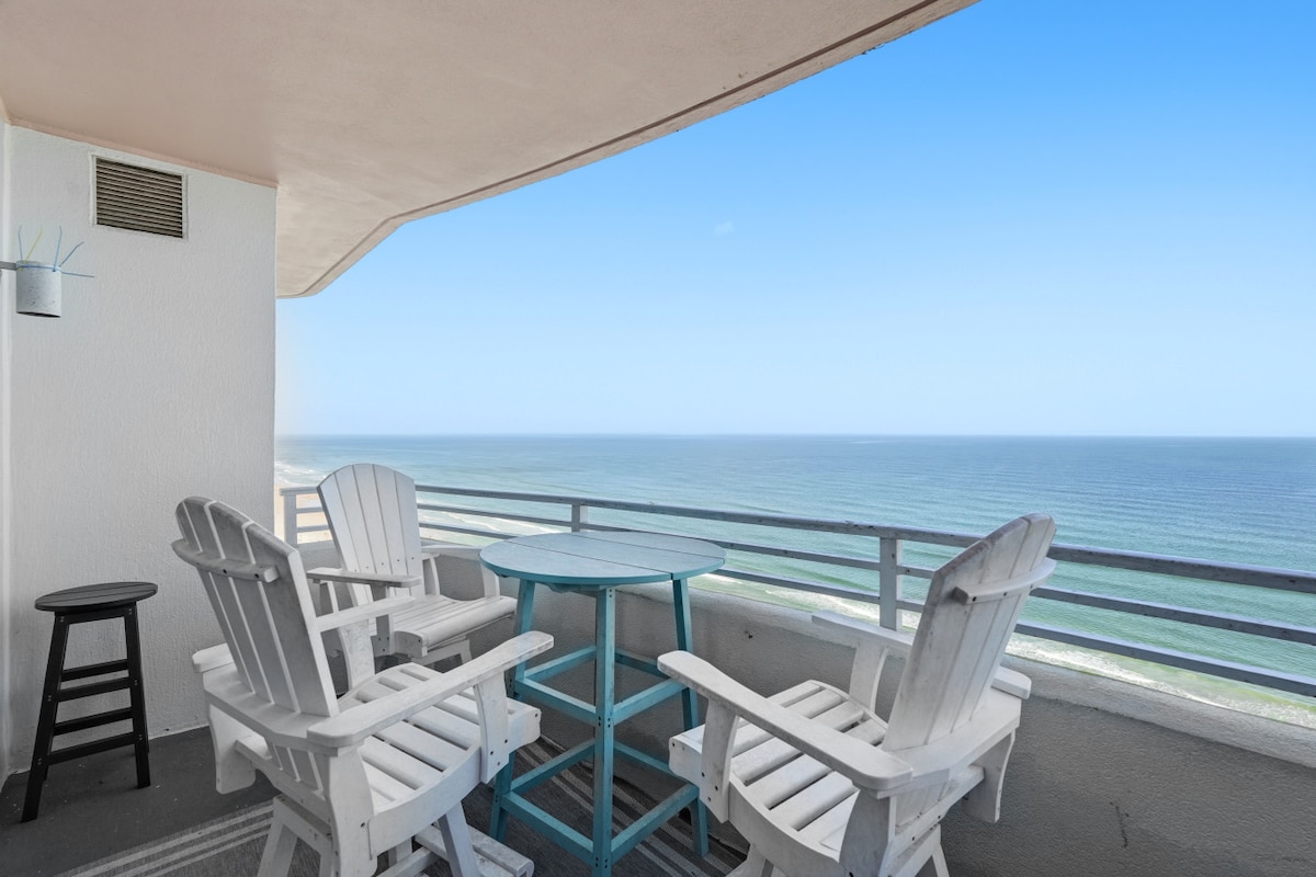 ¡IMPRESIONANTES VISTAS AL MAR! Condominio de lujo renovado + vistas panorámicas al mar. Suite principal con cama tamaño king, balcón privado frente al mar, segundo dormitorio y baño, 2 camas tamaño queen. ¡NUEVA cocina totalmente equipada! Acceso directo a la playa prístina sin coches con arena suave/firme, piscina climatizada junto al mar. Retiro familiar premium, libre de humo y mascotas. ¡Despiértate con los magníficos amaneceres del Atlántico! Escapada tranquila a Daytona Beach Shores: ¡reserva tus relajantes y divertidas vacaciones en la playa! ¡Decorada con buen gusto para Navidad!