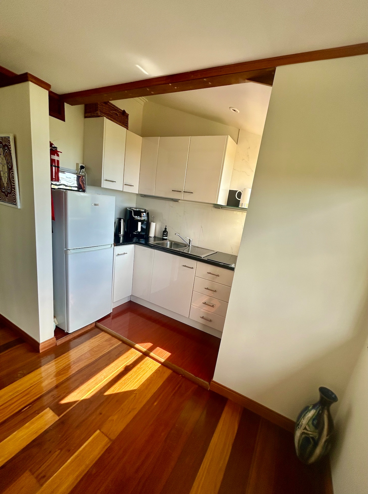 Inspirado en pequeñas casas de todo el mundo, este espacio de 30 m2 ha sido diseñado arquitectónicamente para que te sientas acogedor y cómodo en cualquier época del año. Disfruta de un paseo de 30 segundos hasta la playa, café o comida local, o acurrúcate frente a la chimenea en los meses más fríos. Adecuado para una pareja (lo sentimos, no se admiten niños). Es un loft, por lo que el dormitorio tiene escaleras y un techo bajo. Pero todo se suma al encanto. Disfruta sentado en las copas de los árboles y viendo el mundo pasar en nuestra pequeña ciudad junto a la playa.