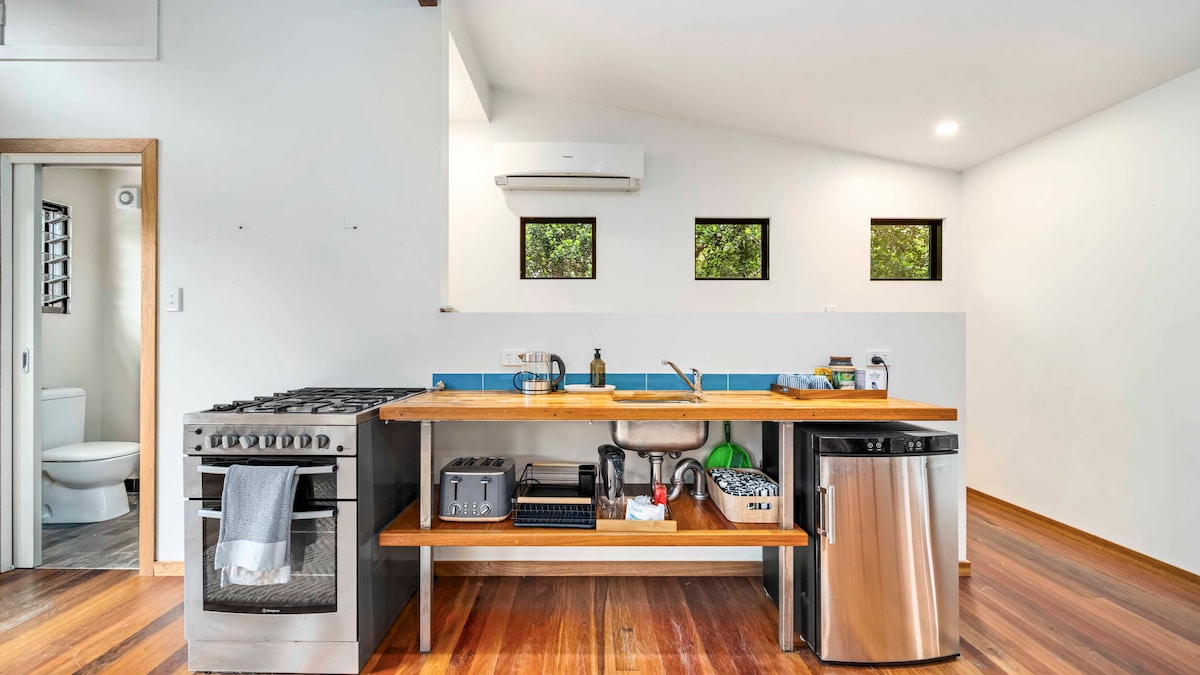 Welcome to White at Home Cottage. The cottage has been designed with comfort in mind and has a relaxed easy going vibe. Perfect for a Girly weekend, Couple's stay, or family get together. We aim to make you feel "Right at Home" So Indulge in the outdoor bath, fluffy white towels, bath salts and robes provided. Relax on the verandah with your morning coffee and enjoy the garden views. A five min drive Into town makes it super easy to enjoy all that Mullumbimby has to offer.