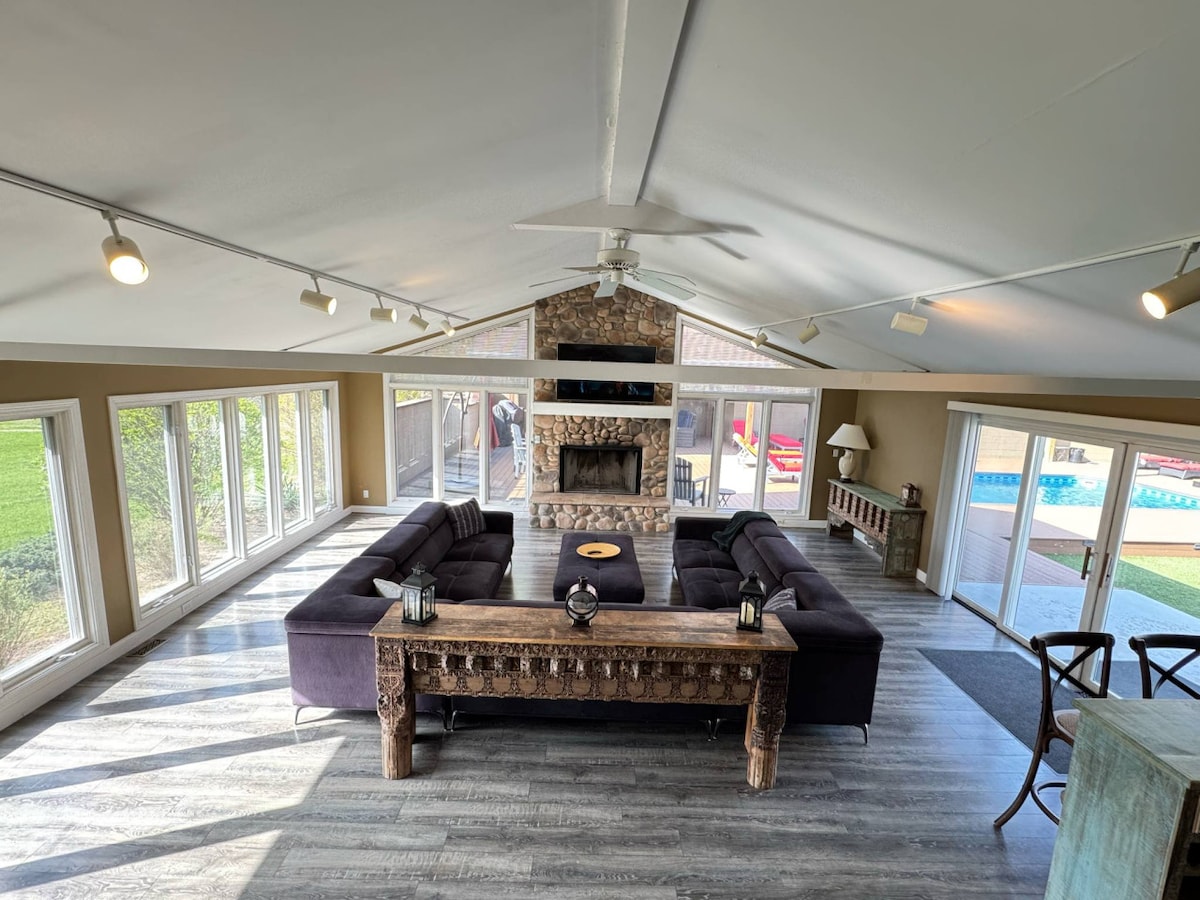 Ubicada en el barrio de Riviera, a solo una milla del centro de New Buffalo, esta casa de campo de 4 dormitorios y 3 baños está diseñada para el entretenimiento y las familias. Disfruta de una milla de playa privada con asociación frente al lago y mirador a pocos pasos de distancia. Hay fácil acceso al río Galien para practicar kayak, pesca o senderismo con un muelle en el barrio. ¡Cerca de Chicago, de todos los servicios de Harbor Country y a solo cinco minutos en bicicleta del Stray Dog!