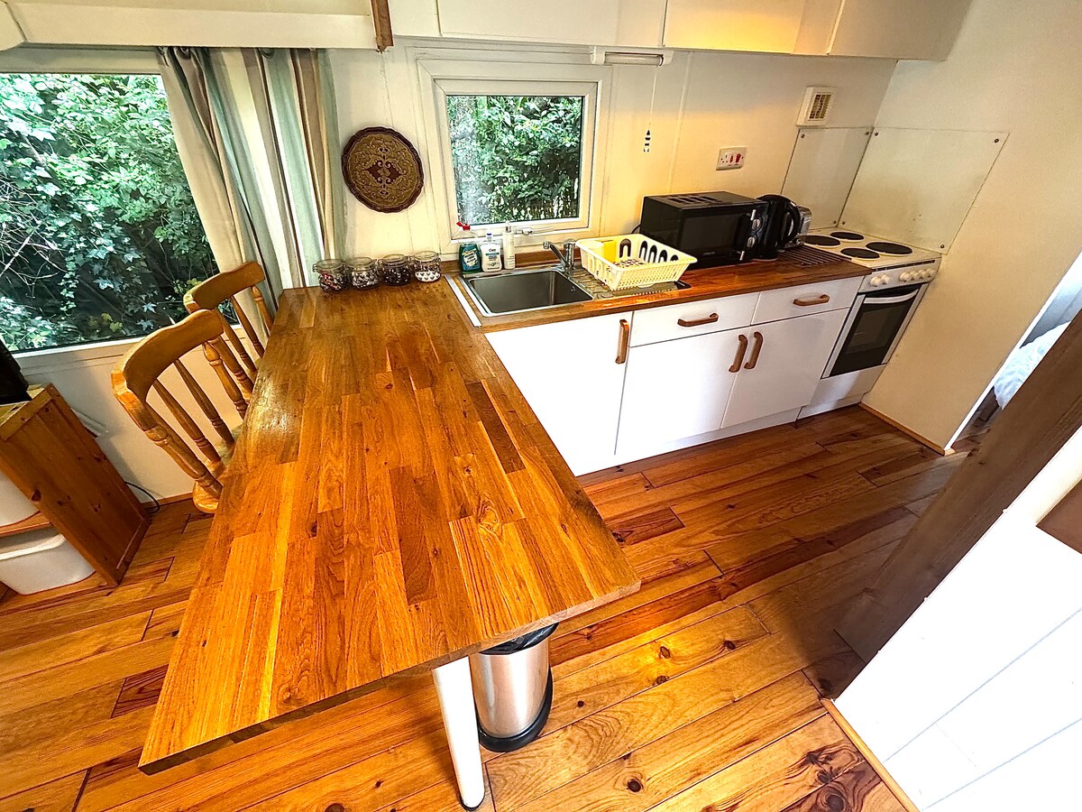 Take it easy at this unique and tranquil getaway. Comfortable lounge, dining area, fully equipped kitchen and shower room. Converted loft with kingsized mattress accessed by electric staircase, fully sprung kingsized sofa bed in lounge area. The deck includes BBQ, sunken seating area, fire pit, pontoon, and slipway for launching small boats, canoes, paddle boards and paddling. It's a great spot to watch visiting birds in Autumn/Winter. This is a pet free property. The creek is tidal.