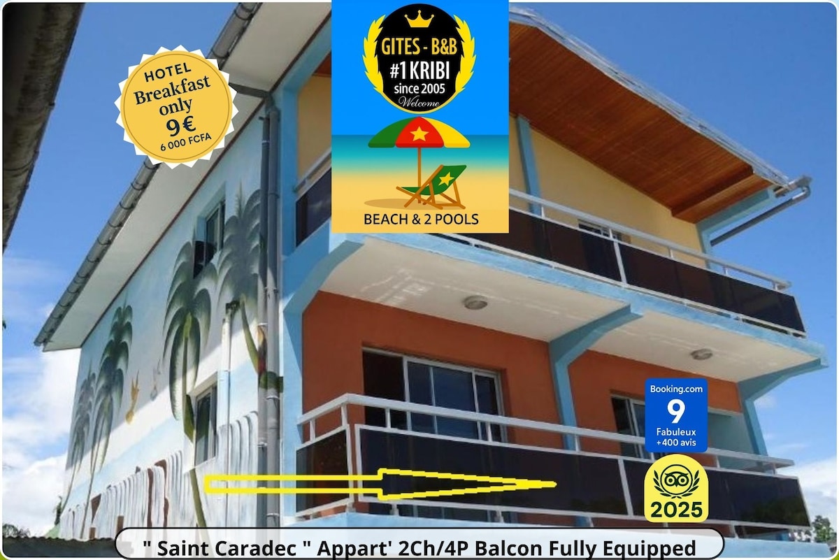 La Résidence Créolia es un remanso de paz y confort situado a 700 metros del mar, a 10 minutos del centro de Kribi, a 15 minutos del campo de golf de Kribi y a 20 minutos de las cataratas del Lobé. Se inauguró en julio de 2024. Este alojamiento de 3 habitaciones y 104 m² cuenta con una terraza panorámica de 31 m² con vistas al jardín, que dispone de una piscina elevada segura. La amplia sala de estar de 40 m2 cuenta con una sala de estar con TV y decodificador y un gran comedor. Cocina independiente moderna totalmente equipada. Cada habitación tiene 1 baño y 1 terraza privada.