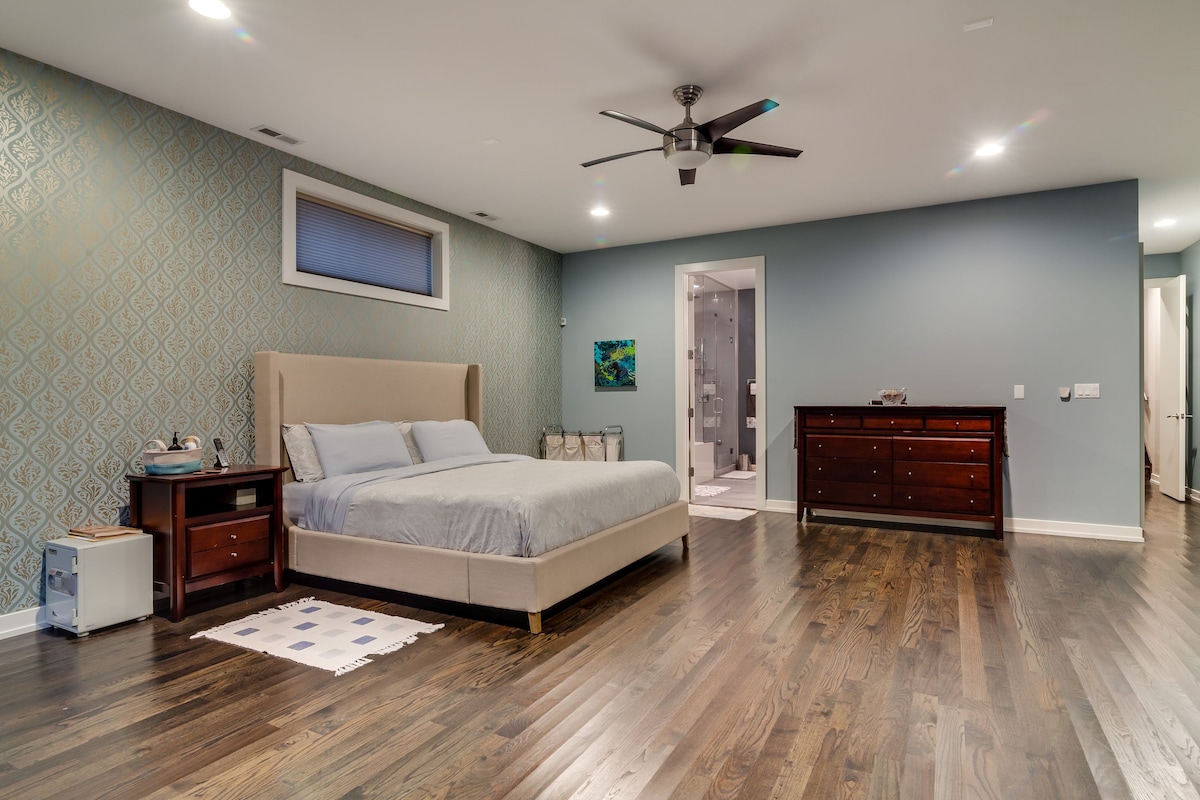 Bienvenido a la mejor escapada de Chicago. Un refugio elegante y relajante a solo 10-15 minutos del centro de la ciudad. Disfruta de dos dormitorios tamaño queen, una acogedora sala de estar con un televisor inteligente de 85” y chimenea, una cocina moderna y una bañera de hidromasaje. Entra en tu salón privado en el patio trasero, apto para 420, con un mirador, asientos de lujo, mesa de billar y televisión al aire libre. Perfecto para familias, parejas y exploradores de fin de semana que buscan comodidad, privacidad y fácil acceso a las principales atracciones de Chicago. Transporte opcional al aeropuerto disponible