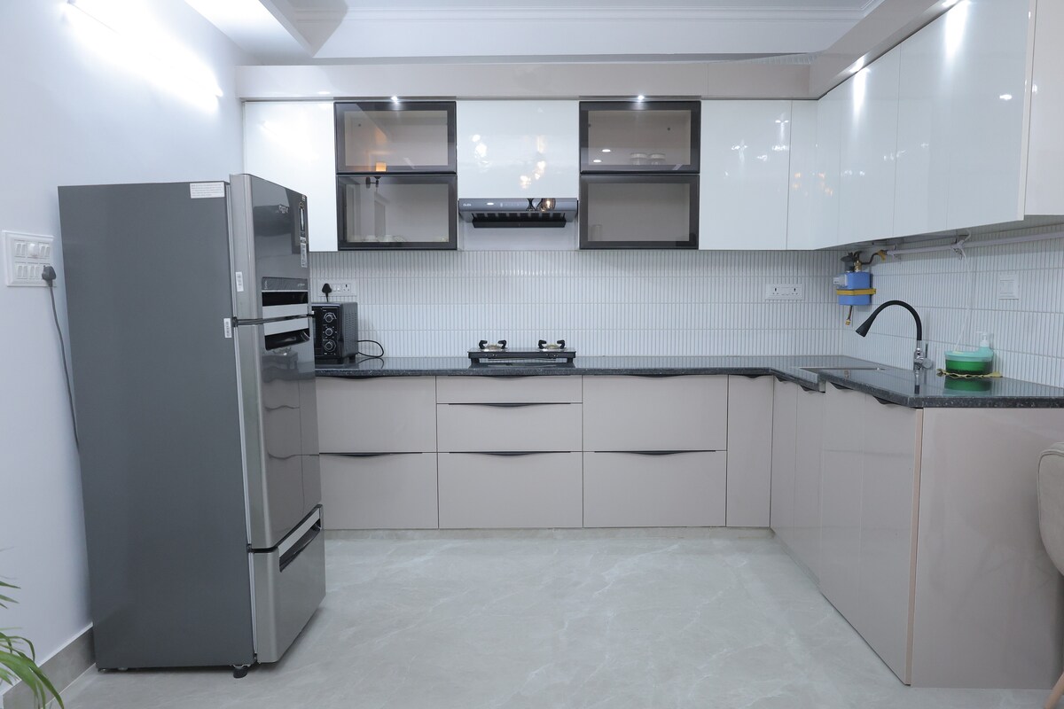 Apartamento de diseño de lujo de 1 habitación y 1 cocina en Dwarka Sector 19B con interiores elegantes e iluminación ambiental. El espacio cuenta con un cómodo dormitorio, una elegante sala de estar, una moderna cocina americana para cocinar algo ligero y un baño privado limpio. Ubicado en una zona residencial segura y tranquila con buena conectividad. Apartamento entero con total privacidad. Ideal para parejas, viajeros de negocios, estancias de tránsito y visitas cortas y tranquilas. Prohibido hacer fiestas o actividades ruidosas.