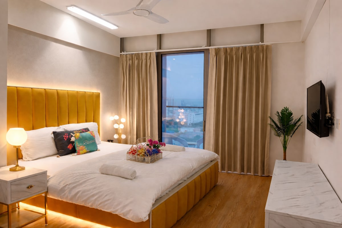 El hogar está en cualquier lugar contigo: una escapada soleada sobre Gurgaon Algunos lugares no solo existen: respiran, susurran, te invitan a reducir la velocidad. Bienvenido a una casa de 12 pisos sobre el mundo, donde el tiempo se derrite en puestas de sol doradas y las únicas notificaciones provienen de los tonos cambiantes del cielo. Un lugar donde finalmente puedes **desconectar, sintonizar y saborear el arte de estar presente. *No se proporciona la tarjeta de acceso al ascensor. Los huéspedes deben hacer una pausa en el cuarto piso para acceder a los pisos.