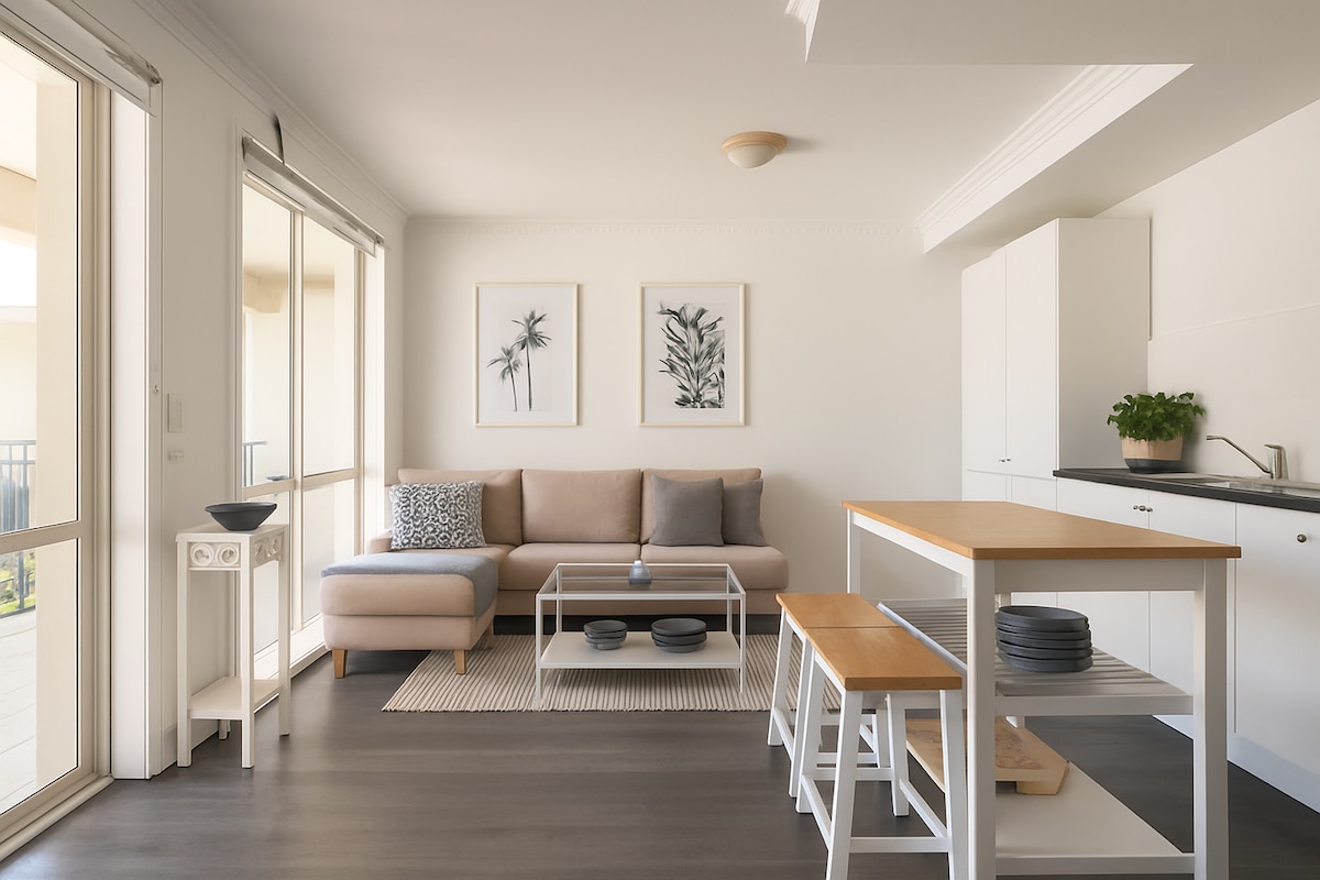 Despiértate con un espectacular amanecer y disfruta de un café preparado en el patio o en la sala de estar bañada por el sol. Este ático de inspiración zen es tranquilo, espacioso y lujoso, con muchas comodidades para el hogar, como una máquina de café, entretenimiento y sábanas suaves. A tu llegada descubrirás un ático tipo retiro, con un amplio salón, comedor y cocina. Tienes acceso a un dormitorio y un estacionamiento, lo que lo hace perfecto para una escapada individual o en pareja, para un contrato de arrendamiento corporativo o ejecutivo.
