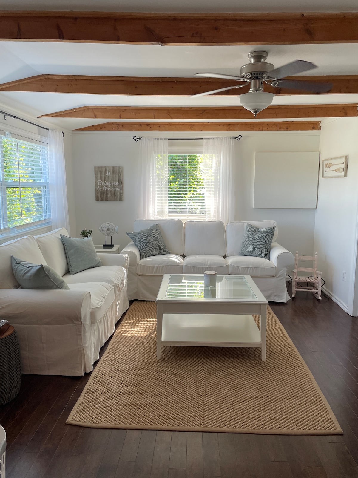 Perfect year-round gateway for a couple or family. Walking distance to a quiet beach with a Gazebo and an acre of land. Fire pit Beach day necessities for all ages Shower only Smart TV's in all rooms Mini Split/AC on main level, the 2nd floor can get warm in the summer, there are fans. Technically sleeps 5 with an ideal mix of adults and children(couch or air mattress for the 5th). 4/5 adults would be too much. Minimum night requirement. For alterations, always inquire.